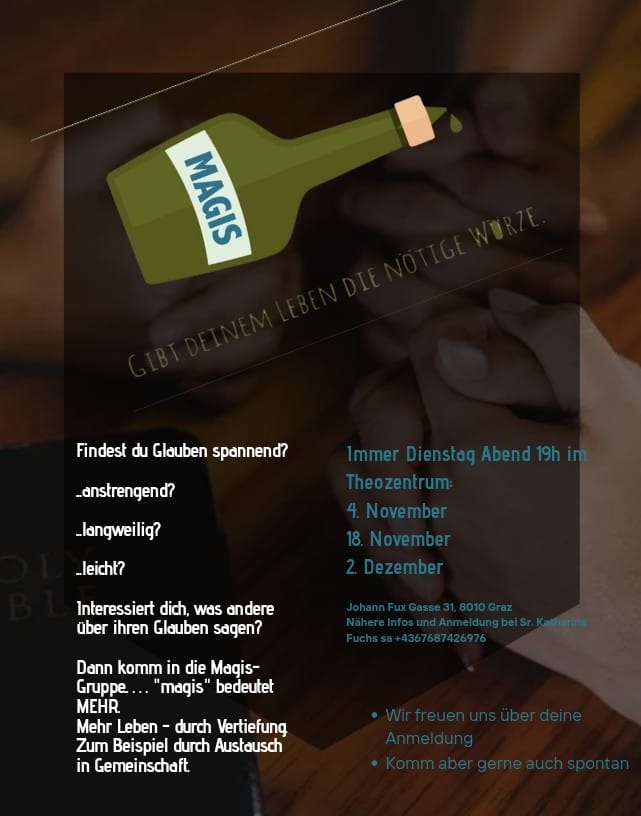 Nähere Infos und Anmeldung bei Sr. Katharina Fuchs sa +4367687426976