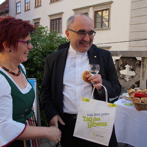 Am 11. Juni feierte Diözesanbischof Dr. Wilhelm Krautwaschl im Grazer Dom einen Gottesdienst zum „Tag des Lebens“, der heuer unter dem Motto „GESCHENK(T) LEBEN“ stand. In seiner Predigt wies der Bischof darauf hin, dass Lebensschutz ganz unterschiedlich gesehen wird, wenn es um alte oder kranke Menschen oder etwa um ein ungeborenes Kind geht. Es sei nötig, „uns immer wieder selbst an der Nase zu nehmen und es in diese unsere Welt einzubrennen, dass wir Freunde des Lebens sind – und uns daher auch in entsprechender Weise in die Debatten zum Schutz des Lebens einbringen“. Musikalisch wurde der Gottesdienst von den „Grazer Kapellknaben“ unter Matthias Unterkofler feierlich gestaltet. Mit einer Agape, bei der es auch einen Infostand des AK „Umfassender Schutz des Lebens – aktion leben“ gab, klang der sommerliche Abend aus.