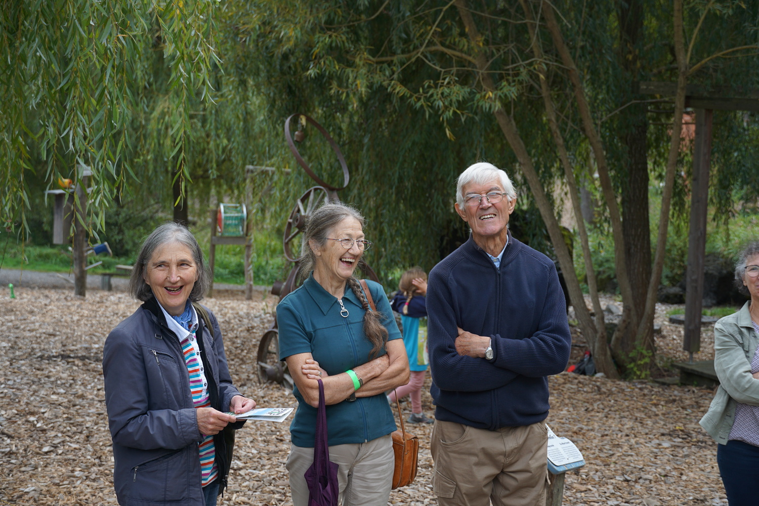 Dann ging es weiter mit einem sehr schmackhaften Bio-Essen in der „Öko-Essbar“ bei Zotter. Als ideale Verdauungsmöglichkeit – und als großes Vergnügen – erwies sich im Anschluss das „Bauerngolfen“. Mit dem gleichen Elan, mit dem der AK Nachhaltigkeit sich um schöpfungsfreundliche Projekte bemüht, wurden auch die Gummistiefel geworfen;-) Vom ältesten Mitglied, Alois Wolkinger, über den ehemaligen KA-Generalsekretär Stefan Kaltenegger bis zur kleinen Elsa waren alle mit Freude dabei.