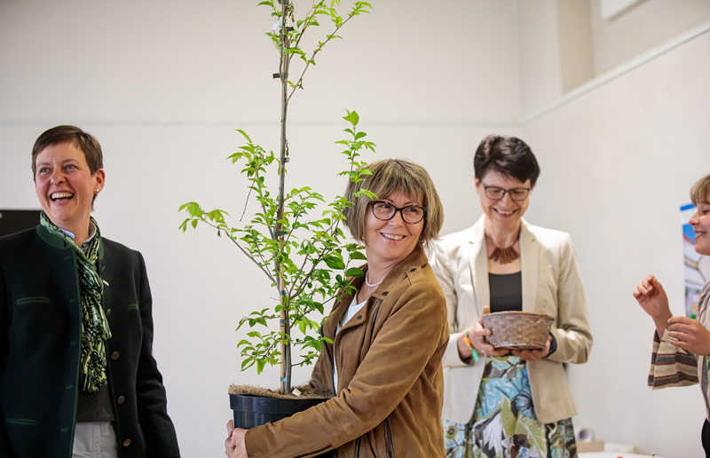 Zusätzlich wurde aus Anlass des Jubiläums „20 Jahre Arbeitskreis Nachhaltigkeit“ der Katholischen Aktion 20 junge Bäume verlost, die die steirischen Gärtner und Baumschulen als Geschenk zur Verfügung gestellt hatten. Die Vorständin des AKN, Biobäuerin Monika Kappel, übergab zusammen mit Gärtnerin Elisabeth Lienhart die Bäume und löste damit große Freude aus.
