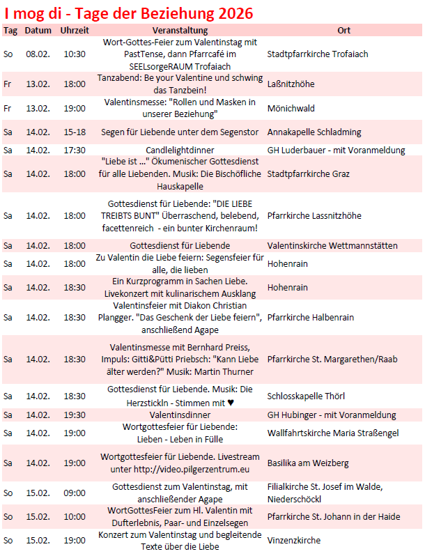 Rund um den Valentinstag werden in den steirischen Pfarren die Tage der Beziehung gefeiert.