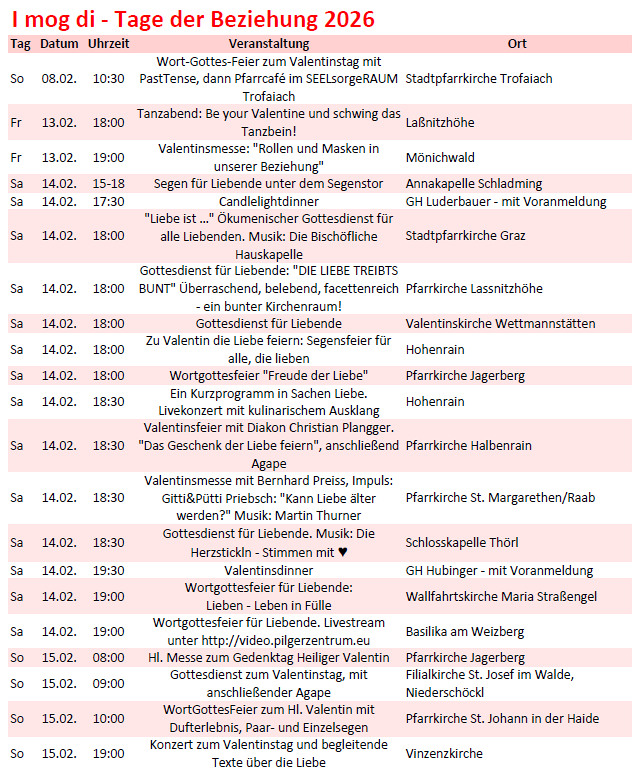 steirischen Pfarren rund um den Valentinstag die