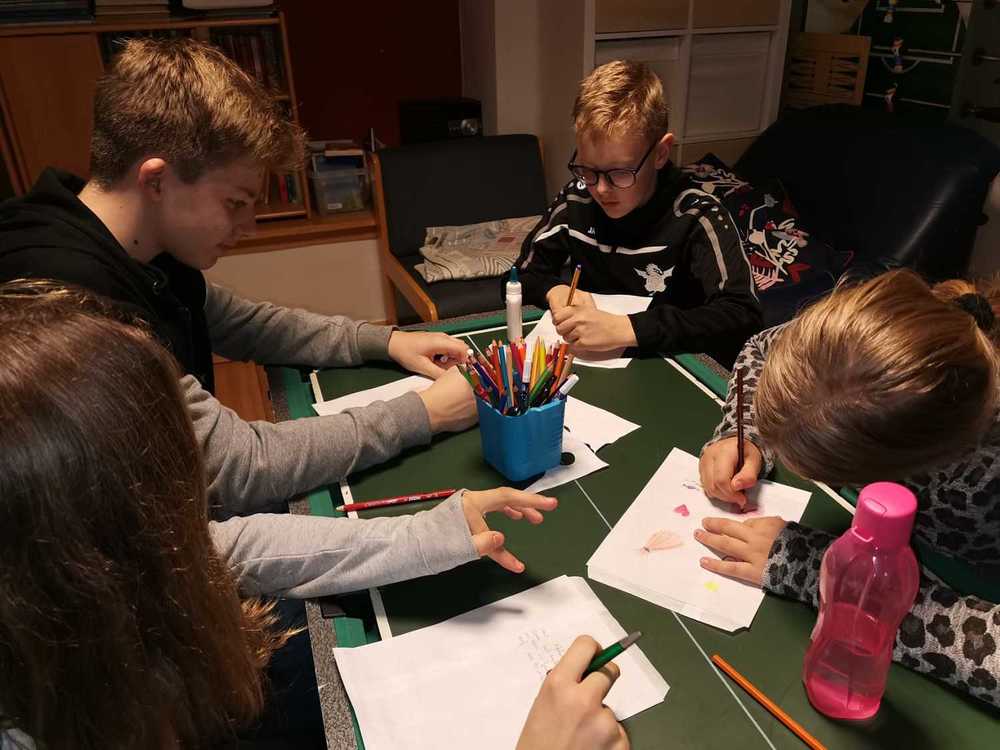 Kinder lieben zu gestalten und mit unterschiedlichen Materialien ihre Kreativität auszuleben. Sie stellen ihre Sicht der Wirklichkeit zur Welt, Gefühle und Erlebnisse dar. Jeder künstlerische Ausdruck ist ein Stück Selbsterfahrung und Persönlichkeitsentwicklung.¹ Eine Vielzahl an Bastelmaterialien, Farben, Werkstoffe wie Holz,Darstellungsmöglichkeiten und Bücher stehen ihnen zur Verfügung. Kinder können Geräte zerlegen und wieder zusammenbauen, außerdem „verschönern“ wir unseren Hort gemeinsam. Immer wieder gibt es kleine Projekte, in denen interessierte Kinder mit Schleifmaschine, Pinsel und Lack arbeiten. Die Kinder entscheiden, ob sie eigene Ideen umsetzen oder sich lieber an unseren Angeboten orientieren. Wichtig ist uns dabei nicht bewertend vorzugehen.