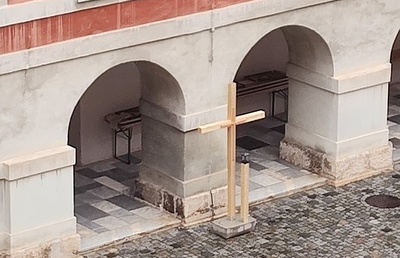 Für die zahlreichen Besucherinnen und Besucher unseres Innenhofs ist es nun ein klar erkennbares Symbol unseres Glaubens und für uns selbst ein neuer geistlicher Mittelpunkt, an dem wir besonders für den Frieden in der Welt beten.