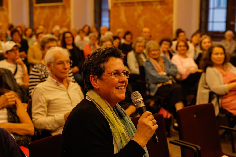 „Schaut nicht auf das, was euch trennt. Schaut auf das, was euch verbindet. Seid Menschen. Seid vernünftig.“ Mit diesem Appell der kürzlich, mit 103 Jahren verstorbenen Margot Friedländer erläuterte Kathrin Karloff, Pädagogische Leiterin des Bildungsforums bei den Minoriten, das Ziel der Veranstaltung: das Verbindende in den Vordergrund zu rücken – und zugleich, aufgrund des Erstarkens rechts- und linkspopulistischer Kräfte, geeignete, aufklärerische Wege und Mittel zu finden, unsere Gesellschaft menschlich und lebenswert zu gestalten. Vor allem gelte es auf dem Hintergrund digitaler Herausforderungen, so Karloff, der zunehmenden Härte im Netz klar, reflektiert und entschieden zu begegnen.