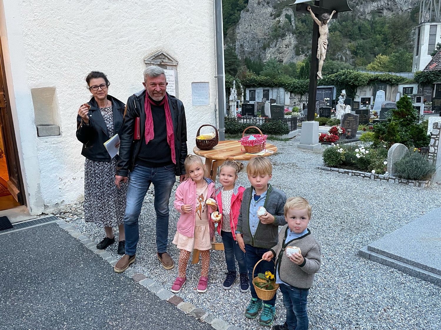 Nach dem Gottesdienst wurde eine Agape gereicht: Getränke und Brot. Ganz besonderer Dank gilt Frau Julia Stoni, die selbst gebackenes Hausbrot spendete. Die Menschen genossen mit viel Freude die Speisen und Getränke und taten sich zu vielen Gesprächen zusammen, mit Herrn Pfarrer Dr. Hüttl, Herrn Bürgermeister mit Ehepartnerin, der Frau Direktorin der Volksschule Peggau und zahlreichen, anderen Kirchen-Besuchenden.