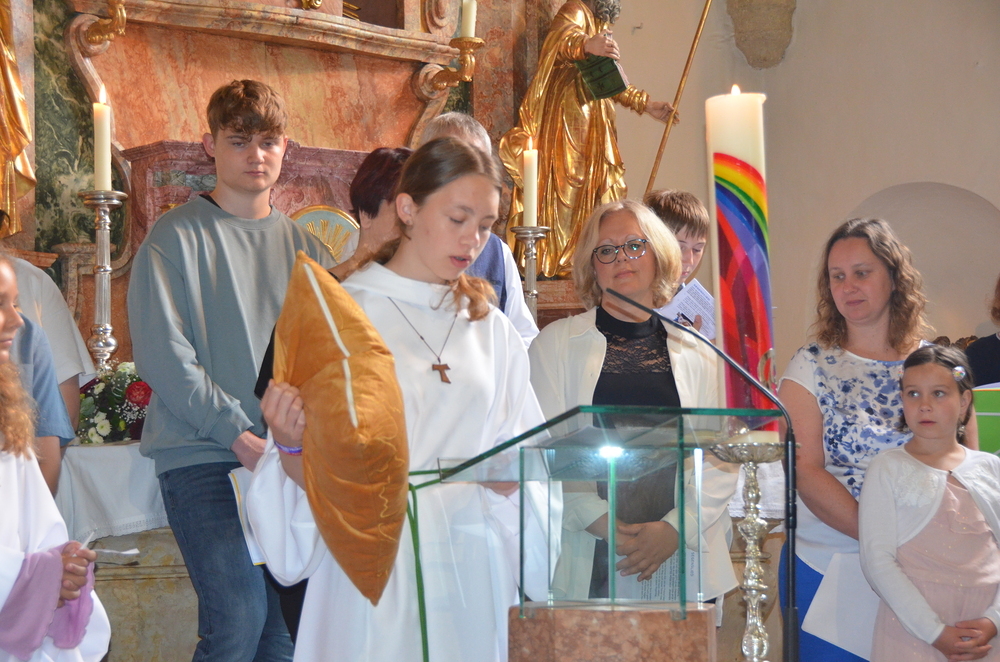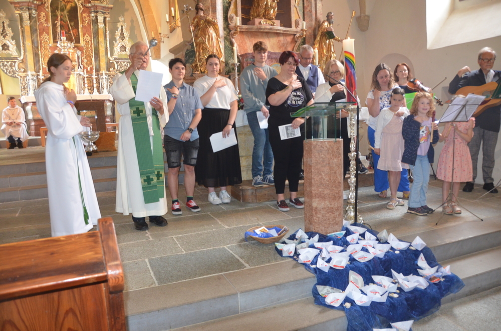 Passend zum nahen Ferienbeginn gestaltete der Familienkreis der Pfarre eine Familienmesse mit Reisesegen. Dabei wurden noch einmal die Erstkommunionlieder unter der Leitung von Katharina Wesener gespielt und gesungen.