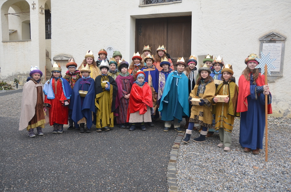 Am Dreikönigstag war es wieder soweit: Die Königinnen und Könige unserer Sternsingeraktion trafen sich sehr zahlreich in der Pfarrkirche in Peggau. Dank vieler Eltern, die ihre Kinder nach Peggau brachten, wurden sie noch einmal mit Gewändern und Kronen ausgestattet und zogen mit Belgleitern und Herrn Prof. Schlacher in die Kirche ein.