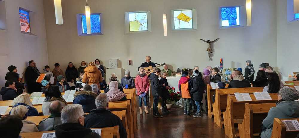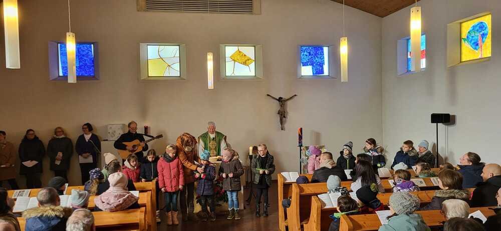 Durch die Unterstützung der Sänger.innen des Erstkommunion-Ensembles unter Katharina Wesener und Toni Gschier wurden wir schon mit den schwungvollen Liedern vertraut.