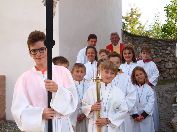 Das Fest der Kreuzerhöhung und Maria 7 Schmerzen waren der Anlass, die neu renovierte Kreuzigungsgruppe des Kalvarienberges von Deutschfeistritz zu segnen.