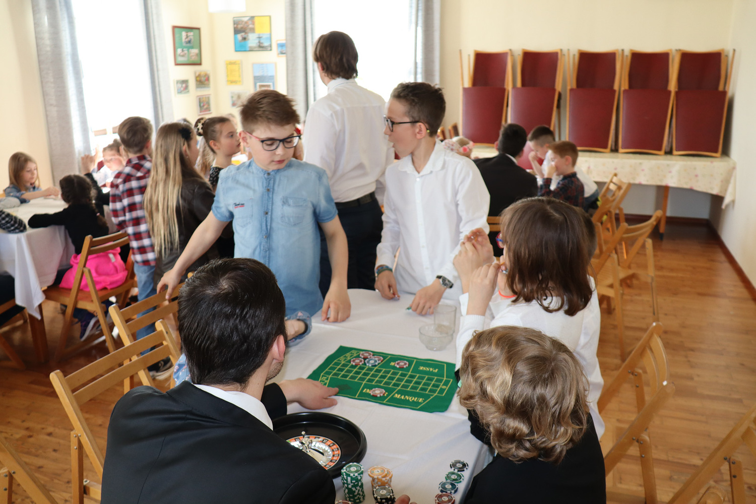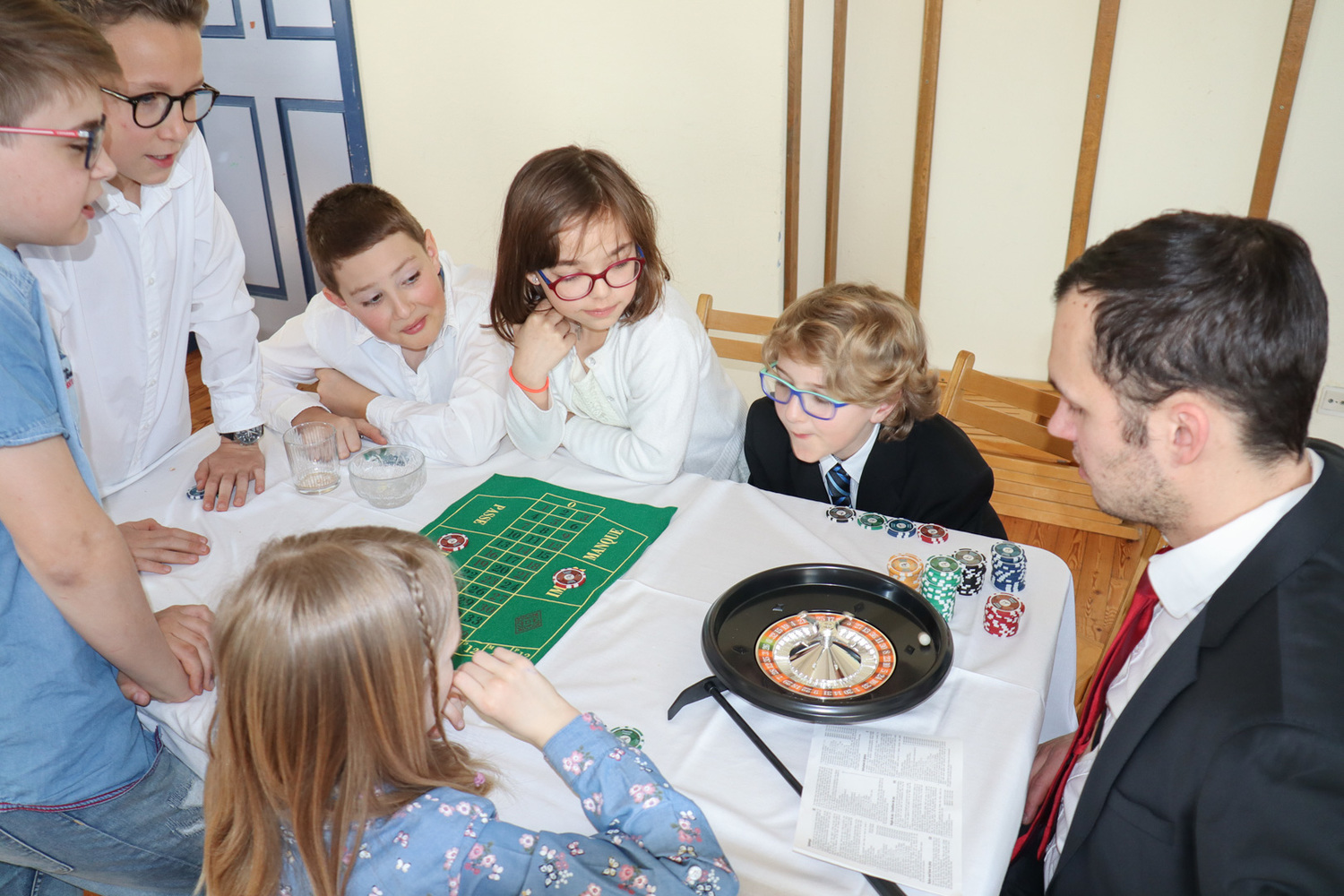 Nach zwei spannenden Stunden ging der Besuch in der Spielbank leider schon wieder zu Ende. Zum Abschluss wurden die Schulden an die Bank zurückgezahlt, die Sieger gekrönt und die restlichen Jetons noch in Naturalien umgetauscht.