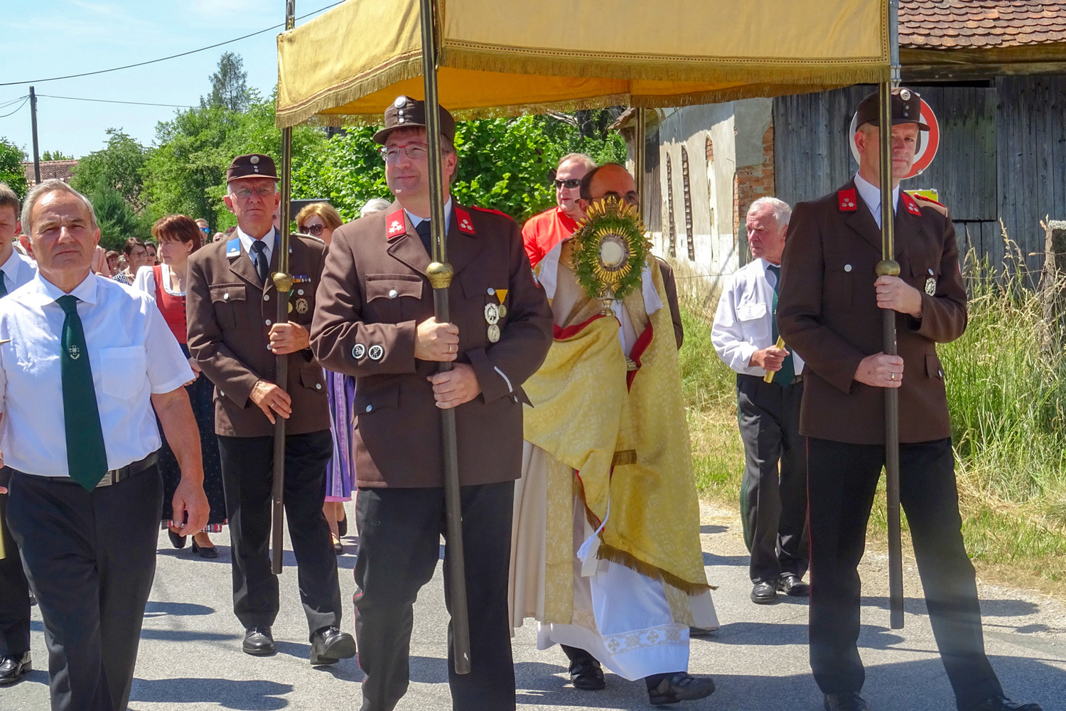 Heilige Messe mit anschließender Fronleichnamsprozession mit Pfarrer Johann Karner in Dobl.