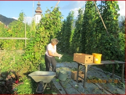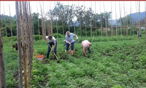 Dann wurden Erdäpfel, Mais, Zwiebel und anderes gesetzt, diverse Samen gesät, Pflanzen gesetzt und über 300 Bohnenstecken aufgestellt. Die Sträucher und Bäume haben wir geschnitten und einen neuen Komposthaufen angelegt.