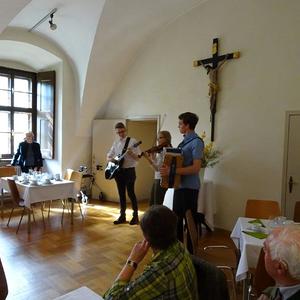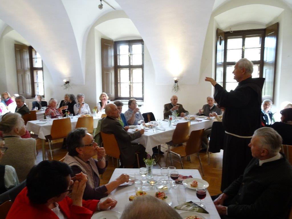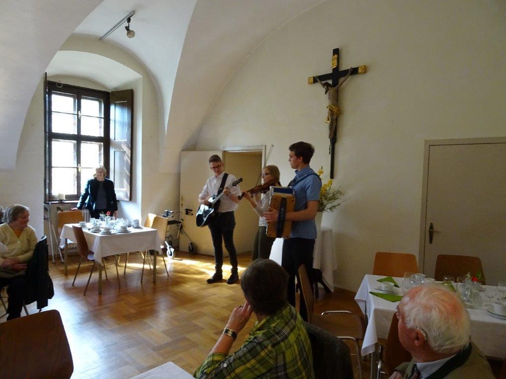 Die launige Begrüßung nahm um 14.30 Uhr Hausherr Pater Simon vor. Anschließend kredenzten die Mitglieder der Katholischen Frauenbewegung köstliche Mehlspeisen und Kaffee auf. Später servierten sie leckere Brötchen, Wein und Wasser. Zwischendurch sorgte das Geschwister-Trio Zöhrer mit ihrer schönen Musik für eine tolle Stimmung. Die Anwesenden unterhielten sich bis zum frühen Abend glänzend. Die älteste Jubilarin war mit 93 Jahren Maria Trieb aus Rothleiten, ältester Gast bei den Männern war Rupert Windisch aus Gams mit 97 Jahren.