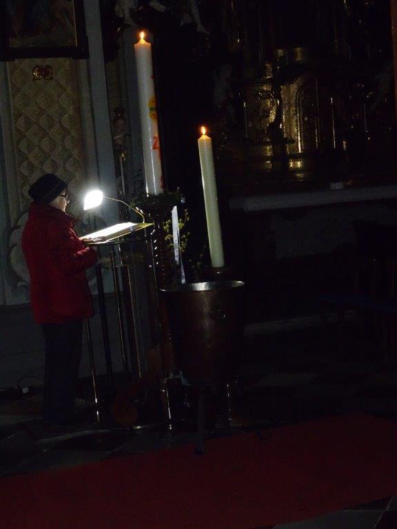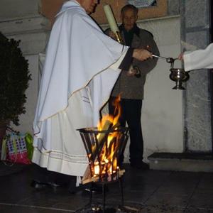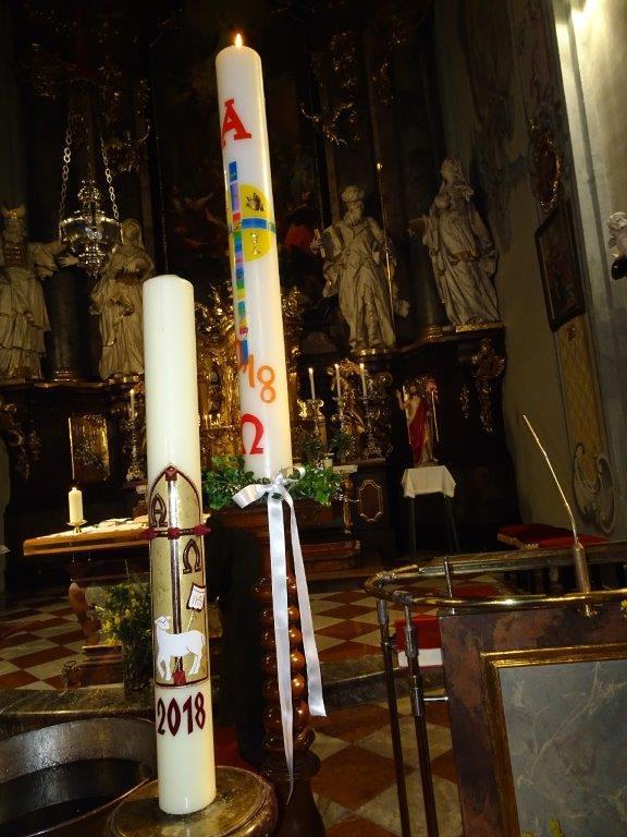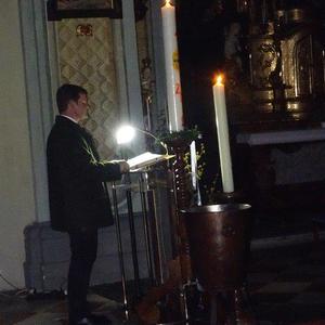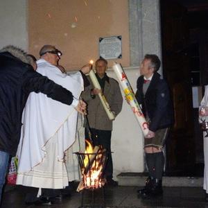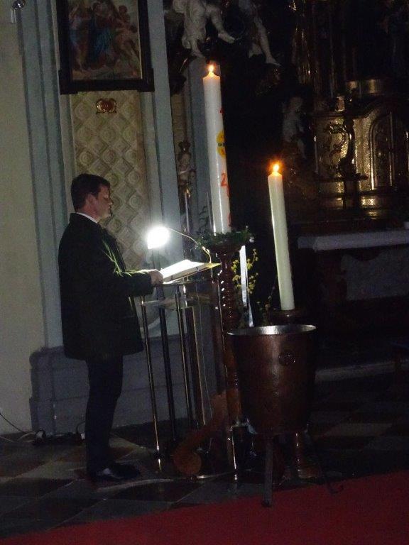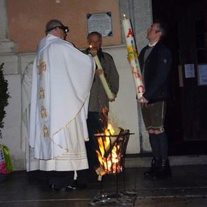 Vom Dunkel zum Licht, vom Tod zur Auferstehung, das war der Inhalt der Osternachtsfeier am Karsamstag um 20 Uhr in der Pfarrkirche. Die Feier der Osternacht, der wichtigsten des Kirchenjahres, begann mit der Entzündung der Osterkerze vor der Kirche. Diese symbolisiert den Übergang vom Dunkel zum Licht. Der traditionelle Ostergruß lautet: "Christus ist auferstanden - er ist wahrhaft auferstanden! Halleluja!"
