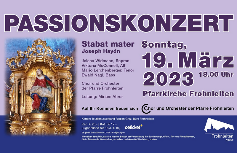 Haydn überträgt den Solostimmen große Arien, deren berührende Melodien den emotionalen Inhalt darstellen. Der Chor umrahmt das Stück und antwortet mitfühlend auf die klagenden Worte. In der Pfarrkirche werden hervorragende Solisten auftreten, darunter die Frohnleitner Sängerin Viktoria McConnell, die seit einigen Jahren im Chor der Wiener Staatsoper engagiert ist. Weiters musizieren Jelena Widmann, Mario Lerchenberger und Ewald Nagl mit dem Chor und dem Orchester der Pfarre Frohnleiten unter der Leitung von Miriam Ahrer.