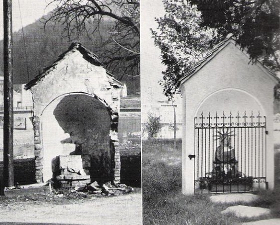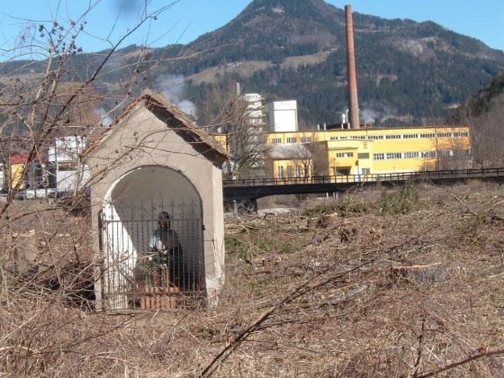Seit Februar dieses Jahres errichtet die Firma Mondi Frohnleiten GmbH eine neue Brücke über die Mur – einerseits wegen des schlechten Bauzustandes der bestehenden Murbrücke und andererseits deshalb, weil der Bau eines neuen Murkraftwerkes geplant ist. Bei den dafür notwendigen Rodungsarbeiten im Auwald wurde ein lange Zeit darin verborgener Marien-Bildstock wieder sichtbar, der vor genau 50 Jahren von einer Stelle an der alten Bundesstraße unmittelbar neben dem Murknie hierher versetzt und renoviert worden war. Damals wurde diese Grünanlage zwischen der Mur, der sogenannten „Koiner-Garage“ und dem Gamsbach angelegt, wobei man laut einem Bericht der „Schweizerpost“ besonders darauf Wert legte, keine künstliche Parkanlage zu schaffen, sondern einen natürlichen Auwald. Der frisch renovierte Bildstock, den man unter einer großen Fichte aufstellte, war ein besonderes Schmuckstück dieses Naherholungsgebietes. Er wurde am 22. Juli 1958 durch Dechant P. Meinrad Maurer vom Stift Rein im Beisein des damaligen Priors P. Angelikus M. Schwarzenbach vom Servitenorden feierlich eingeweiht.