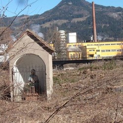 Bis vor einigen Jahren trafen sich in der Nähe dieses Marien-Bildstocks die Fußwallfahrer aus Frohnleiten mit jenen aus Rothleiten, der Gams, Laufnitzdorf und dem Laufnitzberg, um gemeinsam nach Pernegg zu pilgern. Im Laufe der Zeit sind jedoch die Bäume und Sträucher des Auwaldes immer größer und dichter geworden, so dass vom Bildstock nicht mehr viel zu sehen war. Es soll sogar vorgekommen sein, dass einige Menschen dort heimlich ihre Notdurft verrichteten. Umso erfreulicher ist es, dass sich die Leitung der Firma Mondi nun bereit erklärt hat, nach der Freilegung des Bildstocks dieses wertvolle Zeichen des Glaubens an eine würdige Stelle in dieser Gegend zu versetzen. Im Voraus gebührt Ihnen dafür schon jetzt ein herzliches Vergelt`s Gott! Möge die heilige Maria alle an den Neubauten der Firma Mondi beteiligten Menschen vor jeglichem Unglück und Unwetter beschützen!