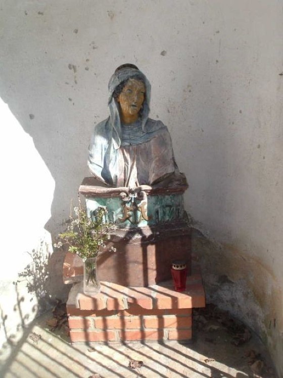 Der aus Ziegeln gebaute und grau verputzte Bildstock ist mit Tonziegeln gedeckt, und am First befindet sich ein schönes schmiedeeisernes Kreuz. Die aus Holz gefertigte Marienstatue darin, die auf einen Mauersockel gestellt wurde, ist von einem kunstvoll gestalteten Schmiedeeisengitter geschützt, das man mit einem Vorhängeschloss versperrte. Sowohl die Statue als auch der Außenputz sind aufgrund von Witterungseinflüssen schon etwas restaurierungsbedürftig.