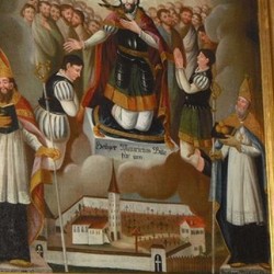 Der heilige Mauritius war der Überlieferung nach ein römischer Offizier, der wie alle anderen Mitglieder seiner in Agaunum (heute St. Moritz in der Schweiz) stationierten Legion aus Theben in Ägypten stammte und Christ war. Die Legion weigerte sich, den römischen Göttern zu opfern und an Christenverfolgungen teilzunehmen. Daraufhin ließ ein Mitregent von Kaiser Diokletian zur Abschreckung jeden 10. Mann umbringen. Die christliche Legion zeigte sich jedoch von dieser drakonischen Maßnahme unbeeindruckt. Anfang des 3. Jahrhunderts starb dann Mauritius den Märtyrertod. Auf Veranlassung des deutschen Kaisers Otto I. bestätigte Papst Johannes XII im Jahr 962 die Verehrung des Heiligen, dessen Gedenktag nun am 22. September gefeiert wird. Der Name „Mauritius“ ist eine Weiterbildung von lateinisch „Maurus“, das heißt „der aus Mauretanien Stammende“ bzw. „der Mohr“. Der heilige Mauritius wird daher immer als dunkelhäutiger Soldat dargestellt wie im Bildstock vor der Murbrücke. Er ist unter anderem der Patron der Soldaten, Schmiede und Glasmaler, hilft bei Pferdekrankheiten, Gicht und Ohrenleiden.