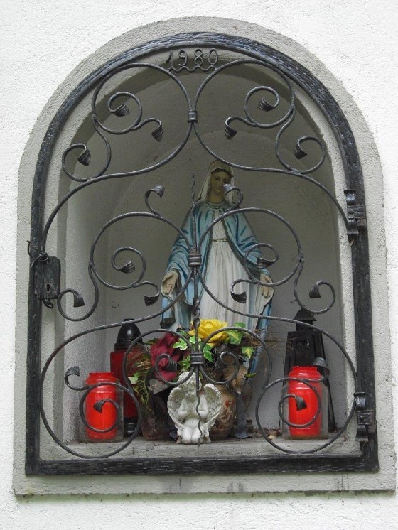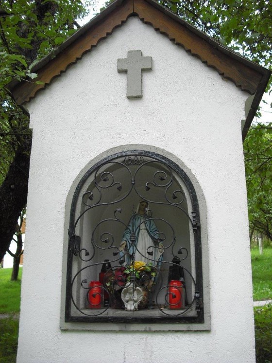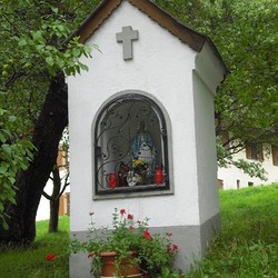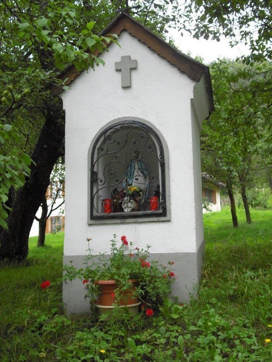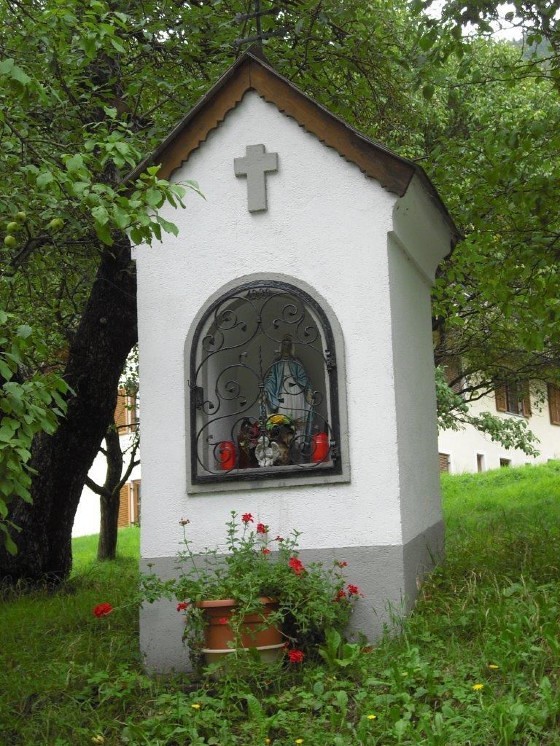 An der Hauseinfahrt zum Anwesen der Familie Maria und Vinzenz Waidacher vlg. Kaiser im Tal (im Volksmund „Koasa“) in Schrems 47 steht unter Obstbäumen und nahe der bekannten Obstpresse ein schöner Bildstock, der 1982 von P. Simon feierlich eingeweiht wurde.