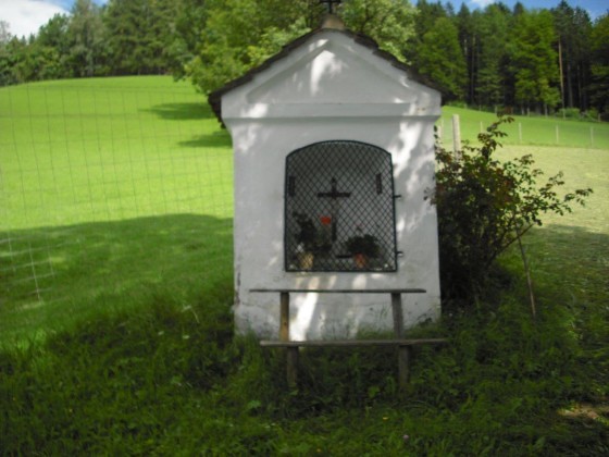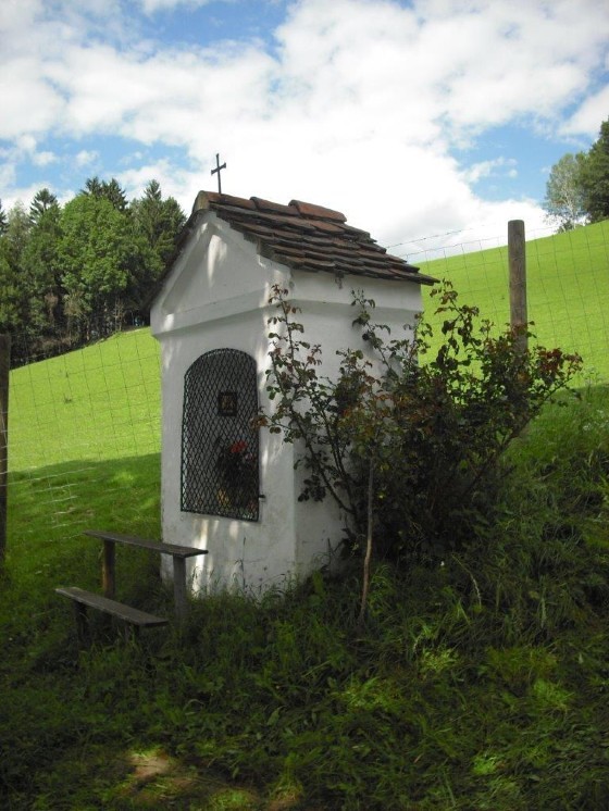 Die im Inneren vorhandenen Bilder aus Mariazell vom heiligen Johannes (Besitzer) und vom heiligen Michael (Sohn) stammen von ihr. Frau Prietl macht bei diesem Symbol der Dankbarkeit oft eine wohlverdiente Pause, um hier zu rasten und zu beten. Möge ihr gegönnt sein, diesen „Kraftplatz“ noch möglichst oft aufsuchen zu können!