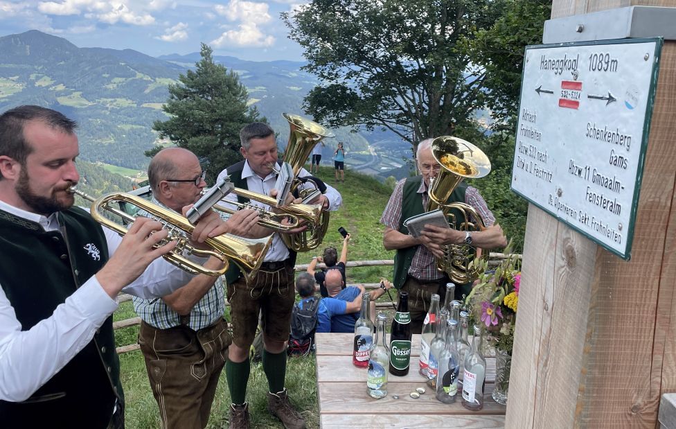 Das alte Gipfelkreuz am Haneggkogel, das ursprünglich 1954 von der Katholischen Jugend Waldstein errichtet wurde, war in die Jahre gekommen und musste daher erneuert werden. Und so wurde das alte Kreuz demontiert und unter tatkräftiger Mithilfe vieler Grundstücksnachbarn und Freunde der Familie Jantscher vulgo Hanegg-Gruber bei herrlichem Wetter im Sommer 2024 durch ein neues ersetzt. Der Lärchenbaum, aus dem das neue Kreuz gefertigt wurde, stammt nur etwa 100 Meter entfernt vom Gipfel des Haneggkogels.