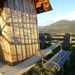 Das Bauwerk ist mit einem Original-Schindeldach gedeckt, angefertigt von einem exzellenten Schindelmacher.Im Außenbereich sind noch drei Sitzbänke aufgestellt, um das umfassende Panorama der heimische Bergwelt genießen zu können. Die Kapelle ist noch mit einem Holzzaun umgeben.