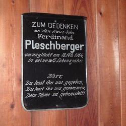 Auf Grund von Verwitterungen musste die Gedenkkapelle 2004 außen renoviert werden. Nach der Feldersegnung, die dort alle fünf Jahre abgehalten wird, wurde die Kapelle am 1. Mai 2004 von P. Simon Orec mit einer heiligen Messe eingeweiht. Das derzeit vorhandene Altartuch mit wundervoller Kreuzstickerei wurde anlässlich dieser Renovierung von Maria Stocker aus Peggau gespendet. Die rüstige, im 85. Lebensjahr stehende Altbäuerin Maria Pleschberger kümmert sich heute noch sehr liebevoll um Pflege und Schmuck dieses Juwels. Trotz der vielen Unglücksfälle, die die Familie Zink-Pleschberger im Laufe der Zeit erlitten hatte, hat sie den Glauben nicht verloren und mit der Kapelle ein sichtbares Zeichen hiefür gesetzt. Auf der schwarzen Gedenktafel des 1954 verunglückten Haus-Sohnes Ferdinand steht: Herr, |