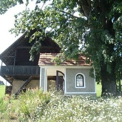 Der Überlieferung nach war an dem Ort, an dem die Kapelle heute steht, eine Kanzel auf dem Baum angebracht. Die Wetterunbeständigkeit dieser Freiluftkanzel und das Bedürfnis nach beständigen Andachten und Predigten führten zu dem Entschluss, dort einen Fixbau zu errichten. So war es im Jahre 1910 Johann Raith, der mit tatkräftigster Unterstützung aller Pfannberger Bauern und unter großen Mühen in der damals wirtschaftlich schwierigen Zeit den soliden Kapellenbau errichtete. Die erforderlichen Baumaterialien wurden dabei noch mit Ochsenkarren herbeigeschafft.