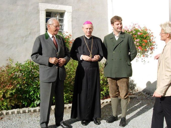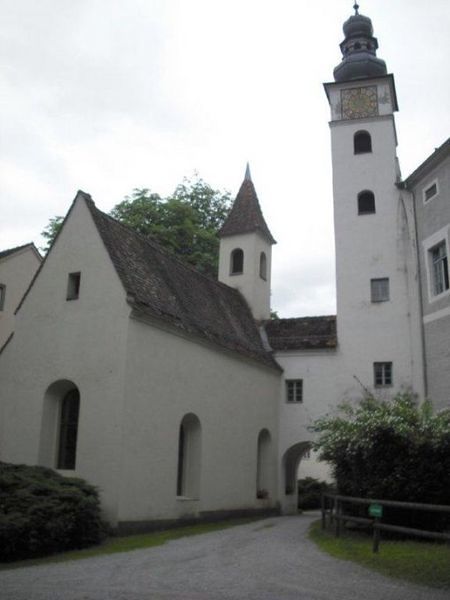 Das Schloss Weyer wurde im 13. Jh. von den Pfannberger Grafen als Schutzanlage auf dem seinerzeitigen "Diebsweg" zwischen Frohnleiten und Leoben-Göß erbaut. In der Folge befand es sich im Eigentum verschiedener Adelsgeschlechter und erlebte eine sehr wechselvolle Geschichte. Seine gegenwärtige Gestalt dürfte das Schloss, eine "Wasserburg", etwa im 16. Jh. erhalten haben. Vom ursprünglichen Wassergraben sind noch heute Teile zu sehen. Als das Schloss während des Ersten Weltkriegs als Reservespital für Kriegsverwundete diente, erteilte 1914 das "fürstbischöfliche Seckauer Ordinariat zu Graz" die Messlizenz, die galt, solange das Schloss als Spital verwendet wurde. 1919 wurde diese Messlizenz um 7 Jahre verlängert und 1964 noch einmal um 10 Jahre. Da die Kapelle bereits 1750 für öffentlich erklärt worden war, hatte sie durch die Errichtung eines öffentlichen Kindergartens unter der Leitung von Klosterschwestern den Charakter einer kirchlichen Anstaltskapelle. Die Schlosskapelle ist der heiligen Lucia von Syrakus geweiht. Nach der Legende wurde die sizilianische Märtyrerin, die schon als Kind ewige Jungfräulichkeit gelobte, von ihrem heidnischen Verlobten als Christin angeklagt und unter Diokletian 310 n. Chr. hingerichtet. Sie ist die Patronin für Augenleiden und ihr Gedenktag wird am 13. Dezember gefeiert. Am 17. September 2004 zelebrierte Bischof Dr. Egon Kapellari mit P. Simon in Anwesenheit von Franz Mayr-Melnhof, des Goess-Saurau und der „Pfarrlegende“ Berta Edler (+ 2010) eine Messe. |