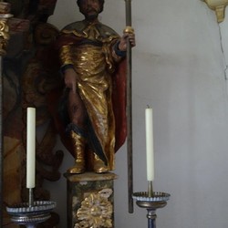 Als „Schreinwächter“ sind seitlich die Figuren der Pestpatronheiligen Sebastian mit den Pfeilen und Rochus mit der Pestbeule am Oberschenkel aufgestellt. Im Aufsatz des Altars sind die Figuren des heiliggesprochenen Ignatius von Loyola, dem wichtigsten Mitgründer und Gestalter des Jesuitenordens, und des heiligen Franz Xaver, einem Wegbereiter der christliche Mission in Asien, positioniert. In der Mitte des Aufsatzes befindet sich ein Gemälde des heiliggesprochenen Alfonso Maria de Liguori, dem Gründer des Redemptoristenordens. Dieser Orden war von 1820 bis 1854 auch in Frohnleiten tätig. Im gläsernen Schrank an der linken Wand ist die bekleidete Figur der heiligen Notburga von Rattenberg untergebracht. Die Tiroler Volksheilige wird als Patronin der Landwirtschaft verehrt. Ihre Statue wird bei den Fronleichnamsprozessionen von den örtlichen Kindern mitgetragen.