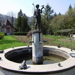 Edwin Eder war es auch, der aus Anlass des Jubiläums „25 Jahre Franziskaner in Frohnleiten“ unweit seines ersten Ateliers den Franziskusbrunnen geschaffen hat, der am 4. Oktober 1992 feierlich eingeweiht wurde. Eine Ausstellung im Gartenpavillon dokumentierte damals die Entstehung dieses einzigartigen Brunnens von der ersten Skizze bis zu den Gussformen.