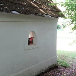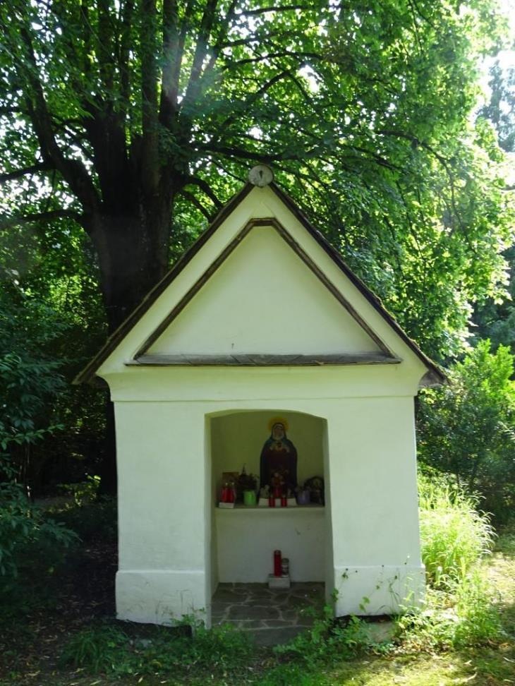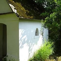 Das Baujahr dieses Kleindenkmals ist leider nicht bekannt. Man weiß aber, dass es eine sehr alte Bausubstanz hat: Unter dem Verputz verbergen sich vermutlich Steinmauern. Die Kapelle ist mit einem Satteldach versehen und mit Eternitplatten gedeckt. Die Eingangsstufe ist noch im Original vorhanden, der Terrazzoboden wurde nachträglich gelegt. An den zwei Seitenwänden befindet sich jeweils eine Öffnung, an der Rückseite ist eine kreisrunde Ausnehmung unter dem Dach vorhanden, in der einst die Grab-Holzkreuze der verstorbenen Angehörigen abgelegt wurden.
