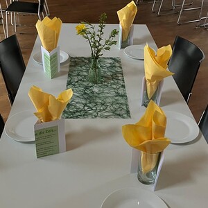 Das Seniorenteam brachte diesmal mit liebevoll dekorierten Butterbroten den Frühling auf den Tisch und die Wunschzettel, die auf den gedeckten Plätzen an den Tischen für die Gäste bereitlagen, waren wieder ein herzlich schönes Geschenk für alle.