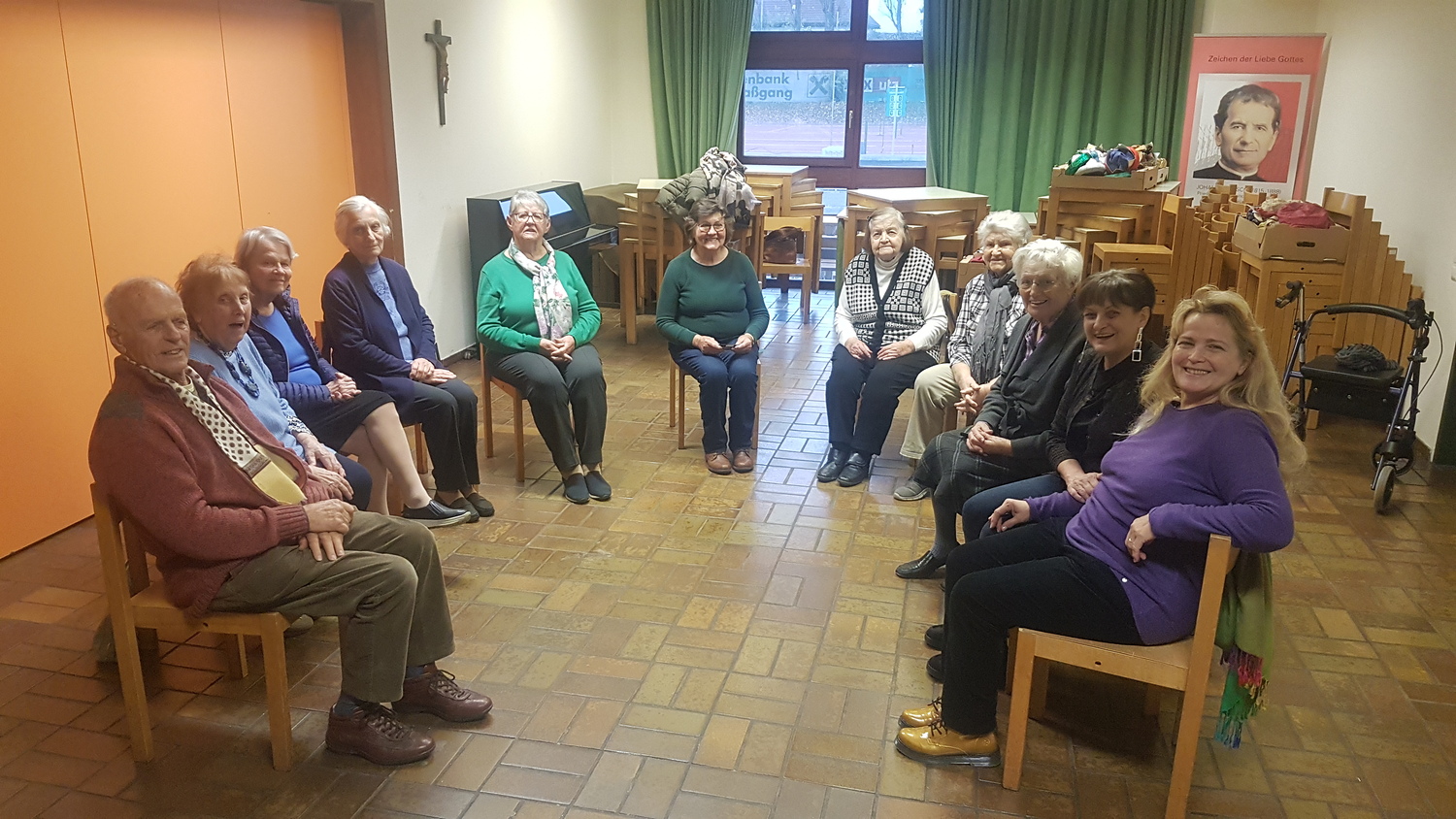 Einmal pro Woche treffen wir uns und führen unter Anleitung verschiedenste Turnübungen im Sitzen durch, um auch im fortgeschrittenen Alter, fit zu bleiben. Aber auch der Spaß und die Unterhaltung untereinander dürfen nicht zu kurz kommen, wir pflegen eine gute Gemeinschaft und feiern auch das eine oder andere Fest miteinander. Die Turneinheit findet jeden Donnerstag um 15 Uhr im kleinen Pfarrsaal der Pfarrkirche Don Bosco statt.  Wir würden uns freuen, wenn auch Sie daran interessiert sind, in einer kleinen gemütlichen Gesellschaft Sport zu treiben.