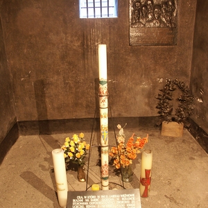 Maximilian Kolbe wurde 1894 in Zdunska-Wola (Polen) geboren. Nach Eintritt in den Orden der Franziskaner-Minoriten studierte er in Rom Theologie, wurde 1918 zum Priester geweiht und gründete eine Vereinigung für das Apostolat katholischen Schrifttums. In Polen und Japan widmete er sich mit zielstrebigem Einsatz der Errichtung von katholischen Pressezentren. 1941 wurde er von den deutschen Nationalsozialisten verhaftet und in das Konzentrationslager Auschwitz gebracht. Am 30. Juli ging er für einen Familienvater, der als Geisel für einen entflohenen Häftling mit neun anderen Polen hätte sterben müssen, freiwillig in den Hungerbunker. Nach 14 Tagen war er noch bei vollem Bewusstsein. Am Vorabend von Mariä Himmelfahrt machte eine Phenolspritze der Marter ein Ende. Kolbe wurde 1971 von Paul VI selig- und 1982 von Johannes Paul II heiliggesprochen.