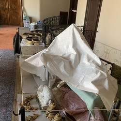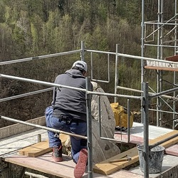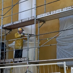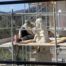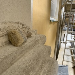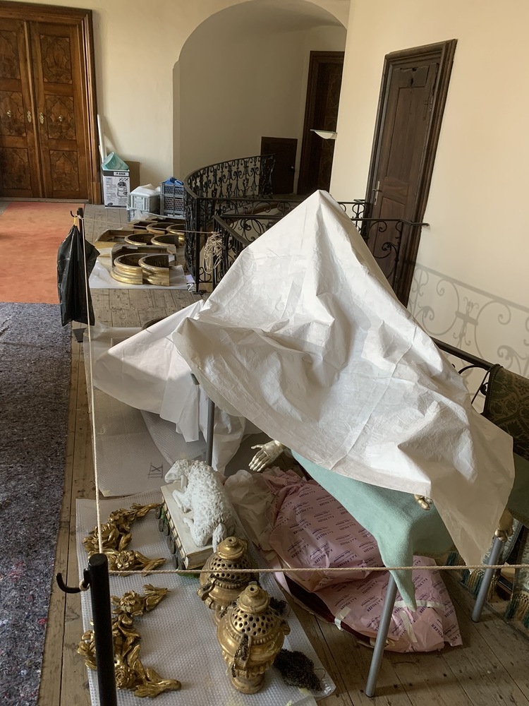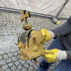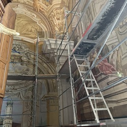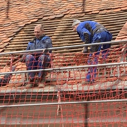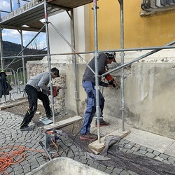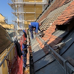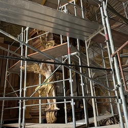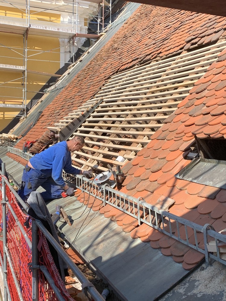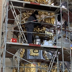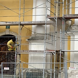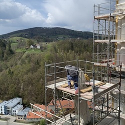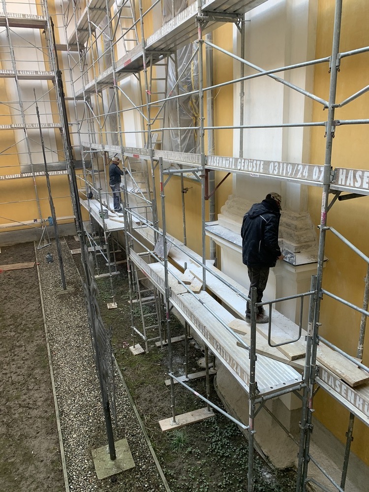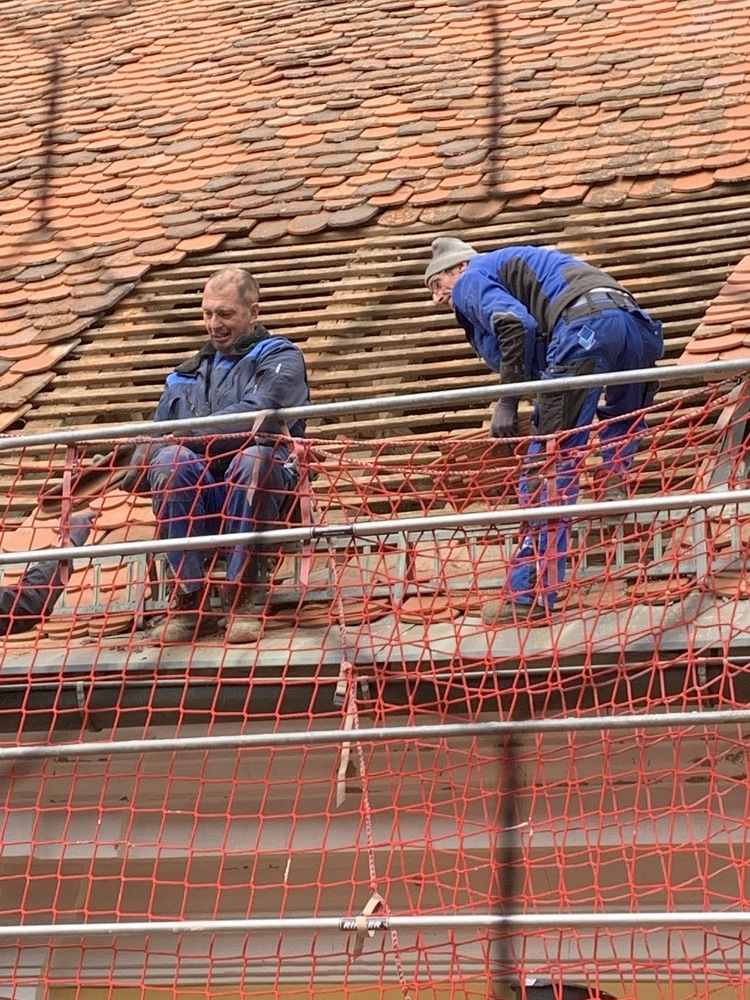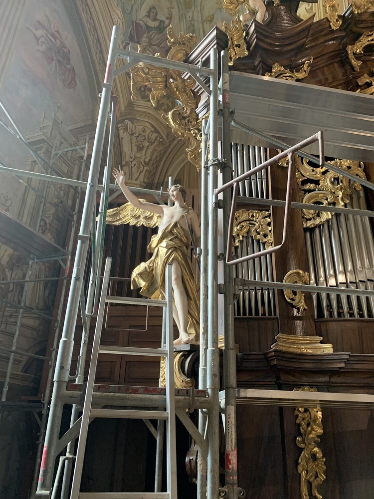 In dieser Woche waren an die 20 Personen in und um die Basilika mit Restaurierungsarbeiten beschäftigt. Gerüstaufsteller, Dachdecker, Steinmetz, Anstreicher, Restauratorinnen und Restauratoren.