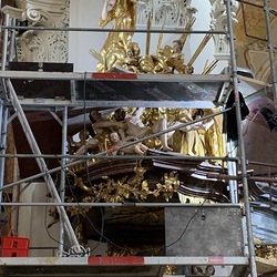 Die Orgelempore und Orgel wurden fertig eingerüstet. Mit dem Kirchendach wurde auf der Südseite begonnen. Der Sockel wurde an der Fassade abgetragen. Im Außenbereich begannen die Steinrestaurierungen in schwindelnden Höhen. Die Türme wurden mit einem Hochdruckgerät gereinigt. An den Gesiemsen an der Basilika wurde schadhafter Putz entfernt. Die Kanzel wurde gereinigt; ebenso der Hochaltar. An diesem begannen die Steinrestaurierungen.