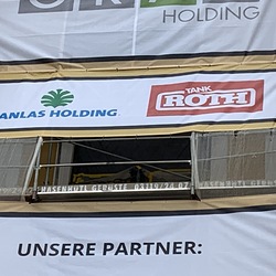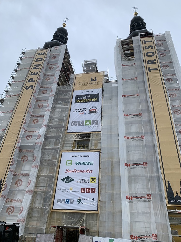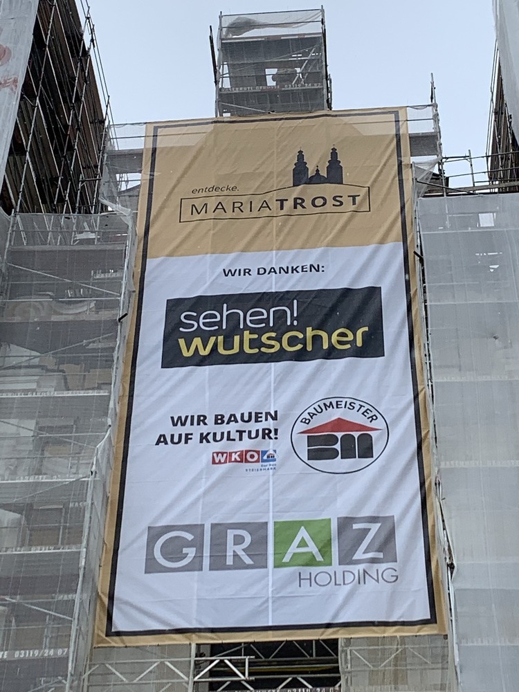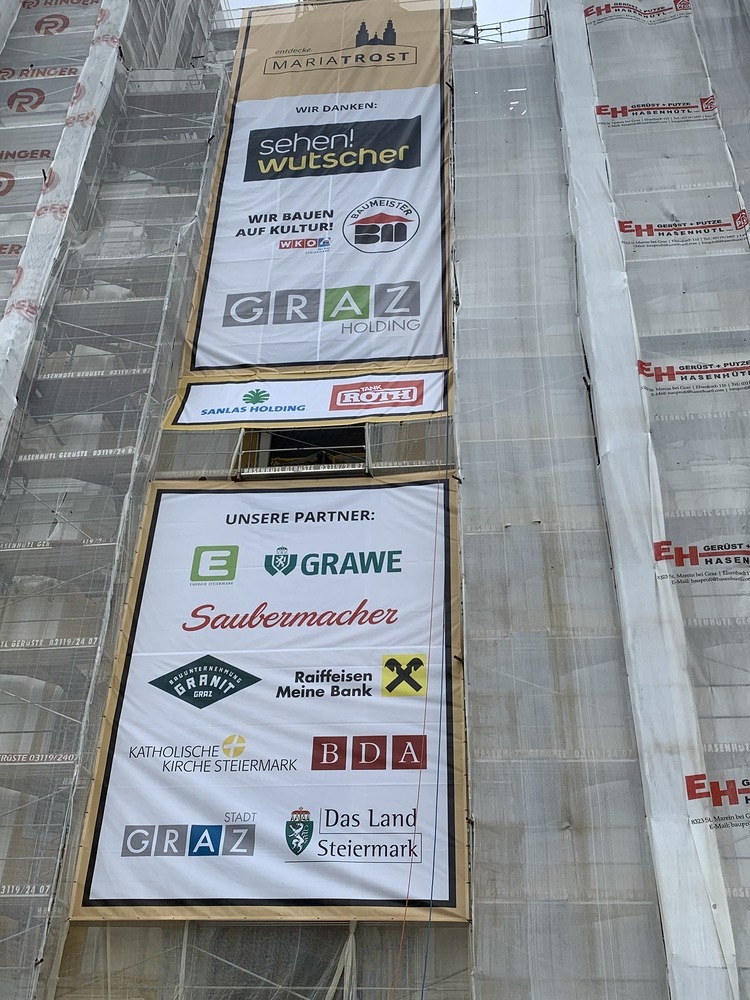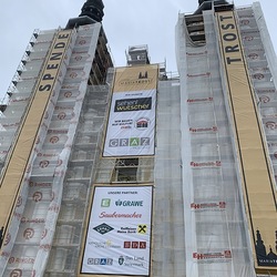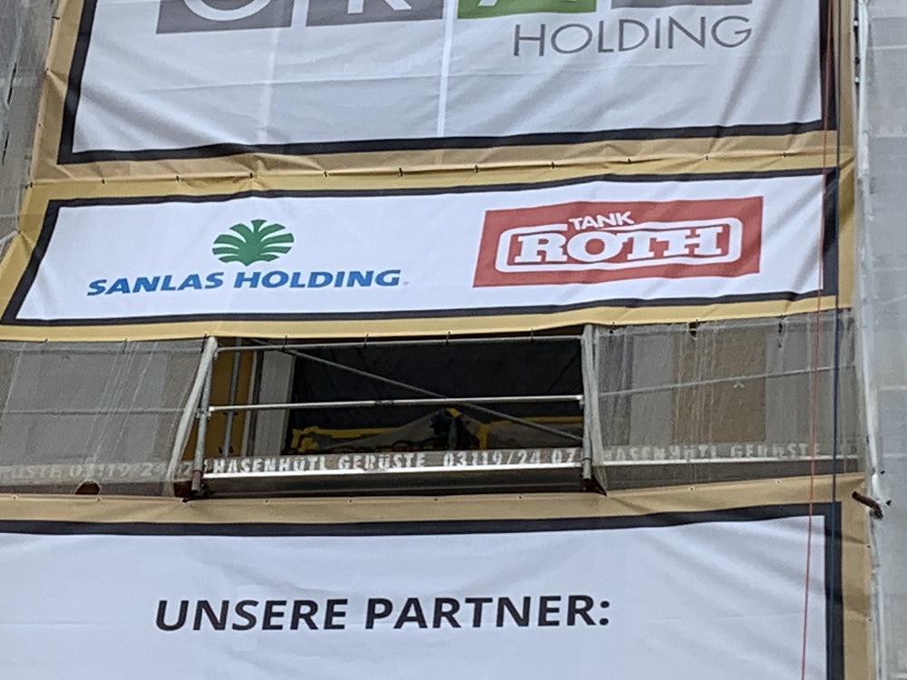In dieser Woche wurden die Werbeplakate an der Fassade angebracht.