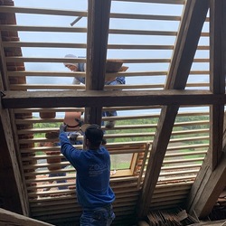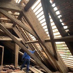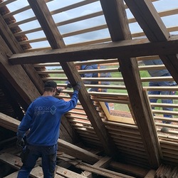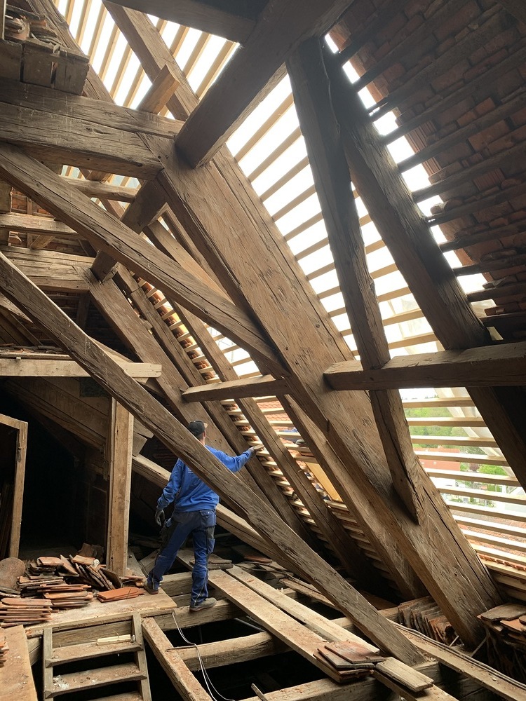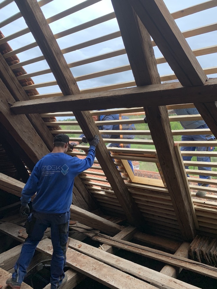 Die Dacharbeiten sind voll im Gang.