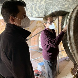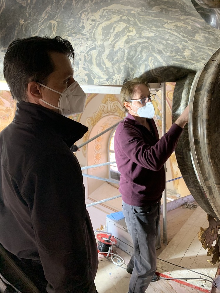 Bei der Begehung des Hochaltars wurde am Baldachin ein großer Riss entdeckt.