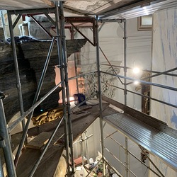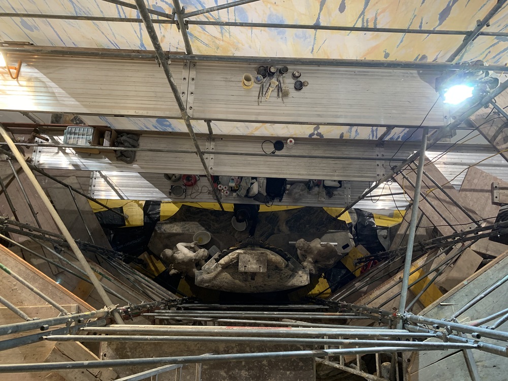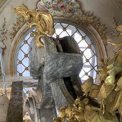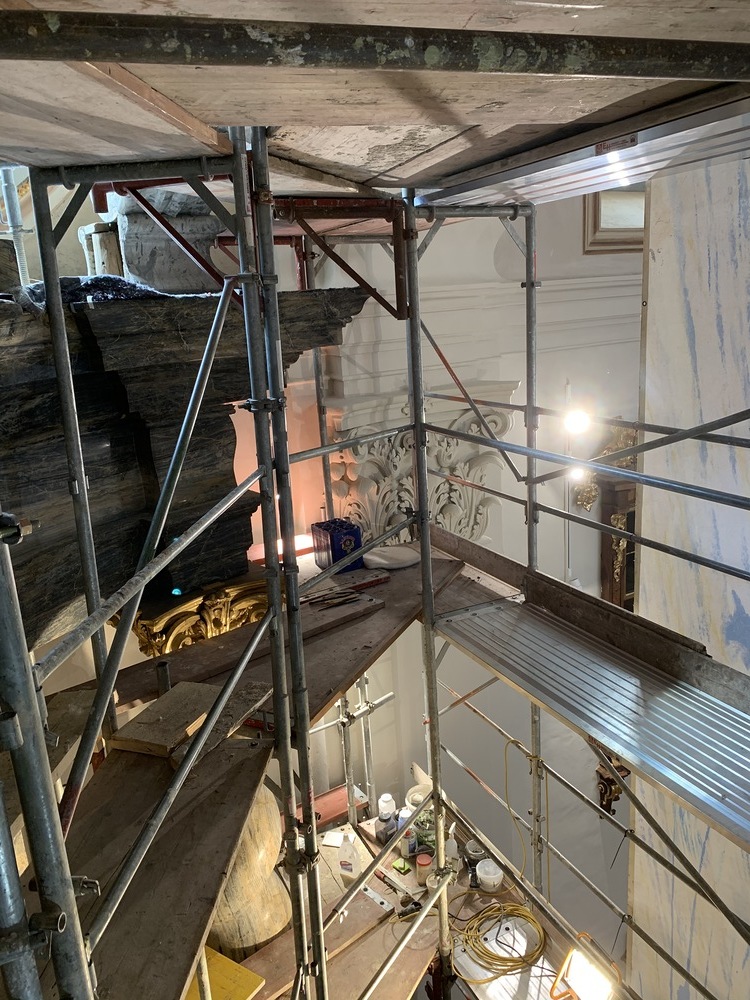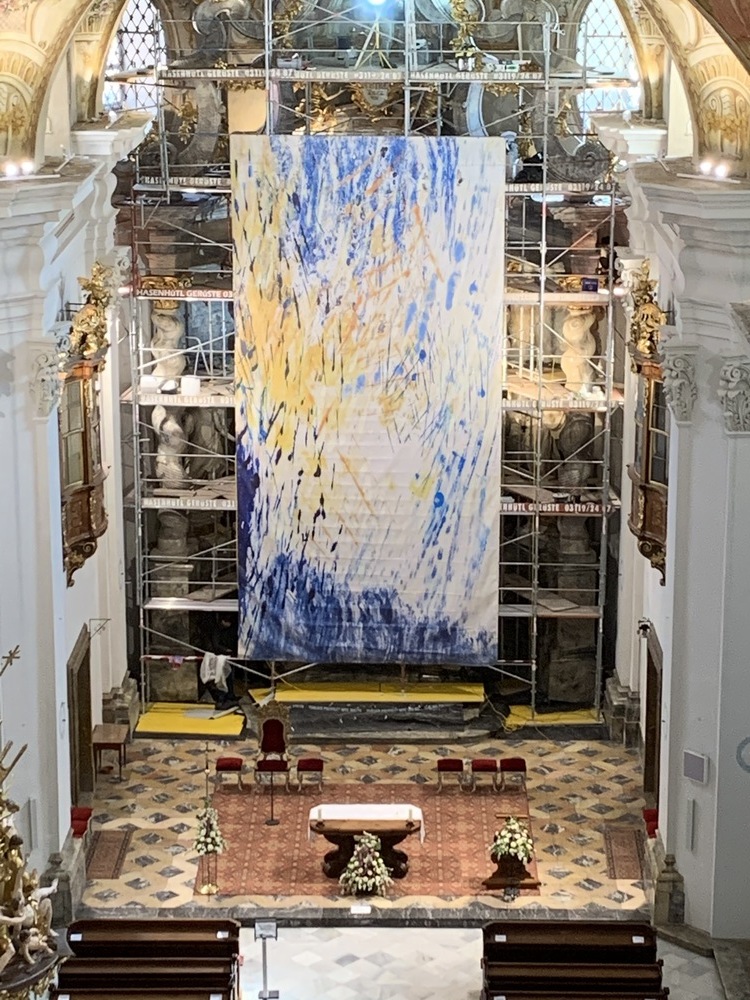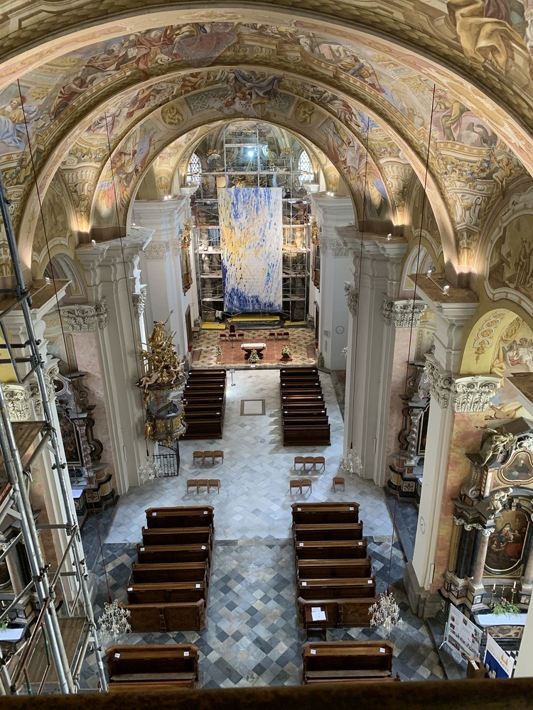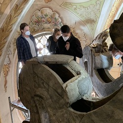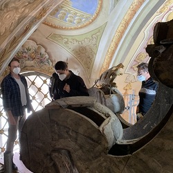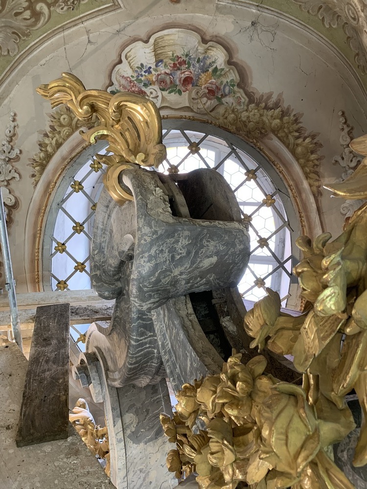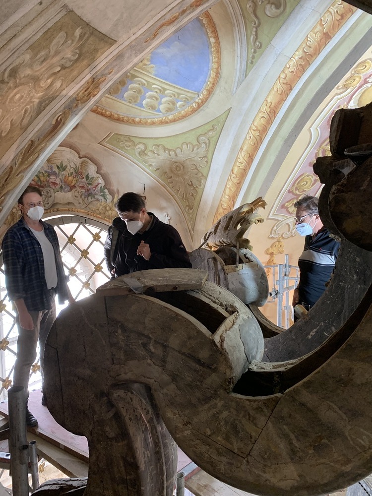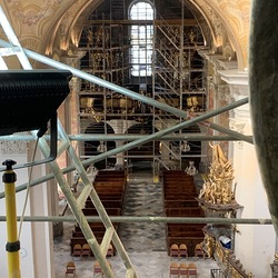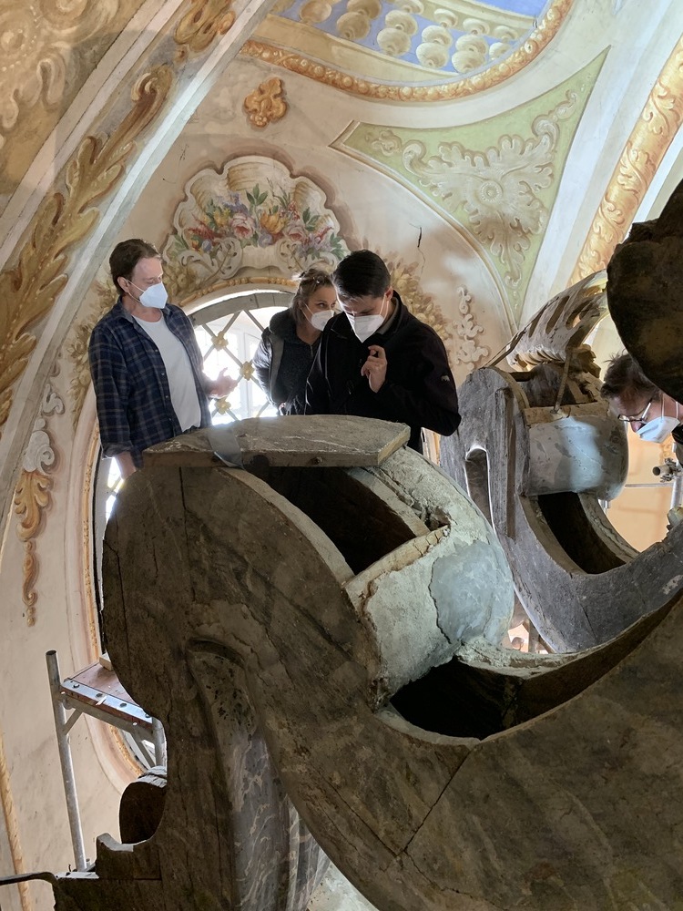 Baubesprechung und Besichtigung der Renovierungen am Hochaltar und der Orgelempore.