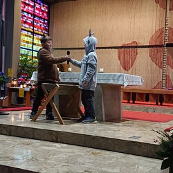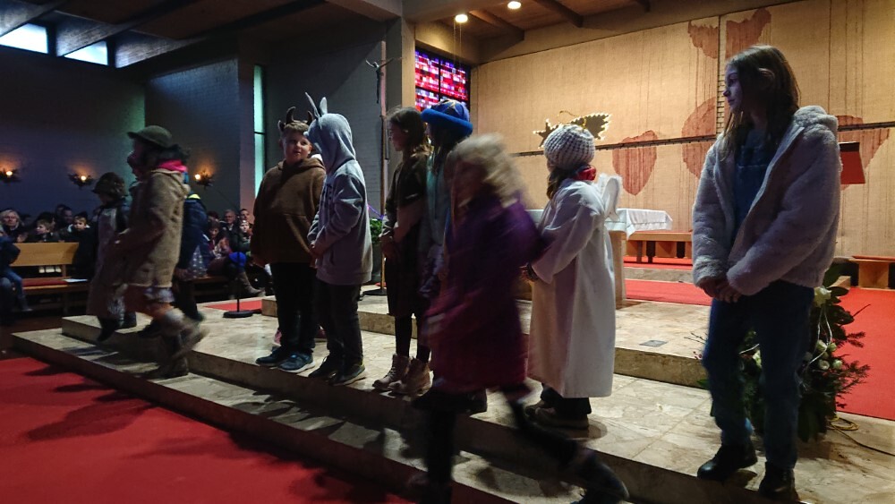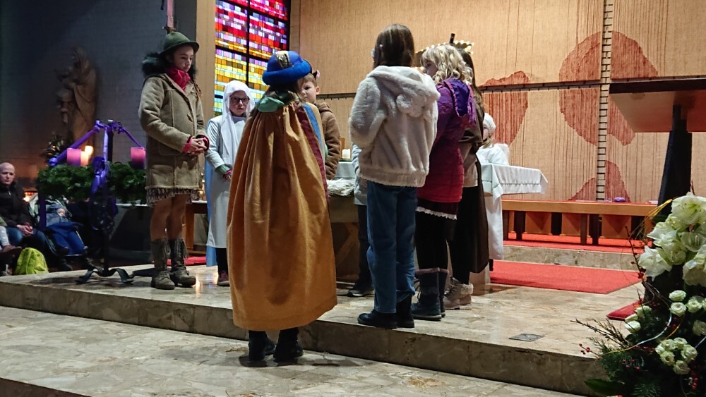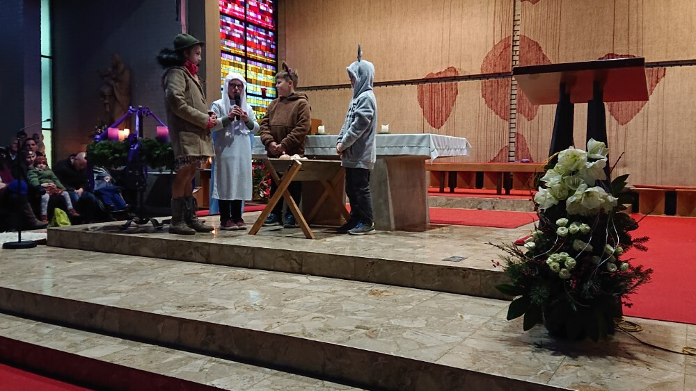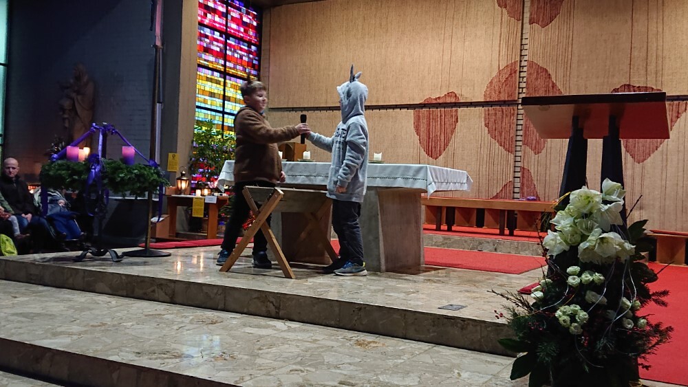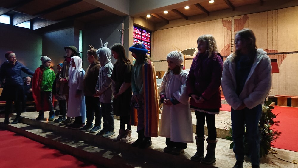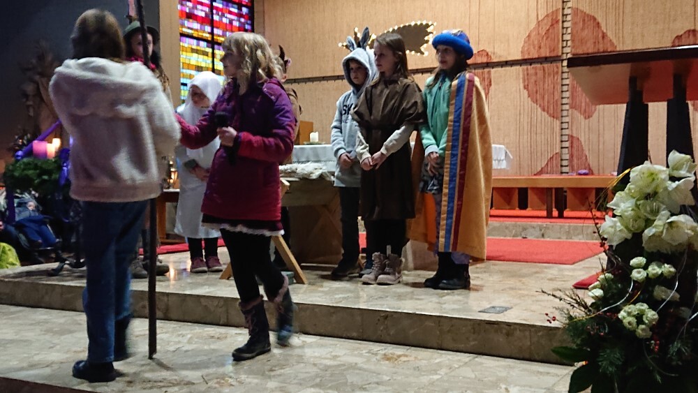 Tina Fegerl hat mit den Kindern in vielen Proben wieder ein tolles Krippenspiel einstudiert und eine besinnliche Andacht vorbereitet. Musikalisch begleitet wurde es von eine Bläsergruppe von klein bis groß.