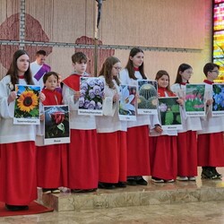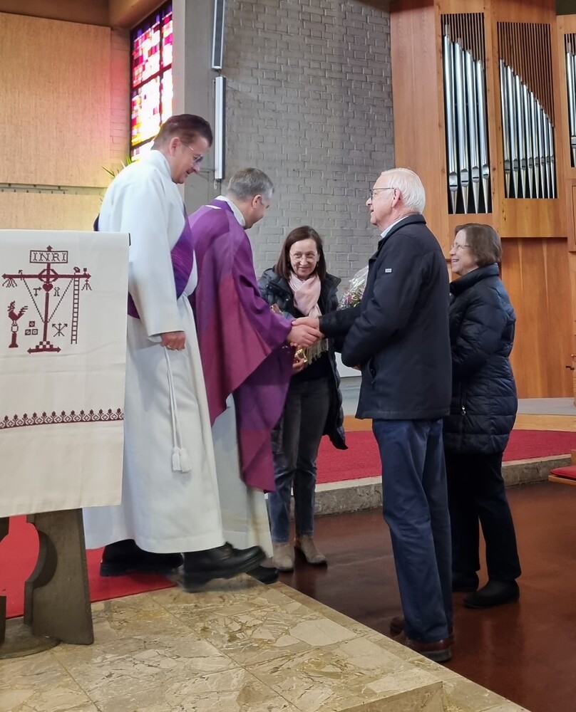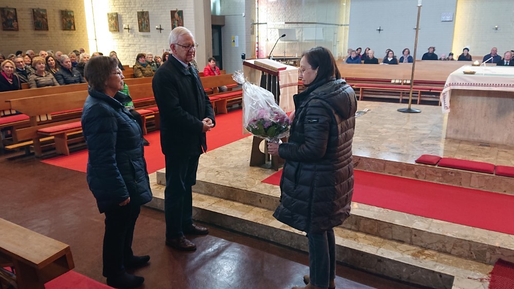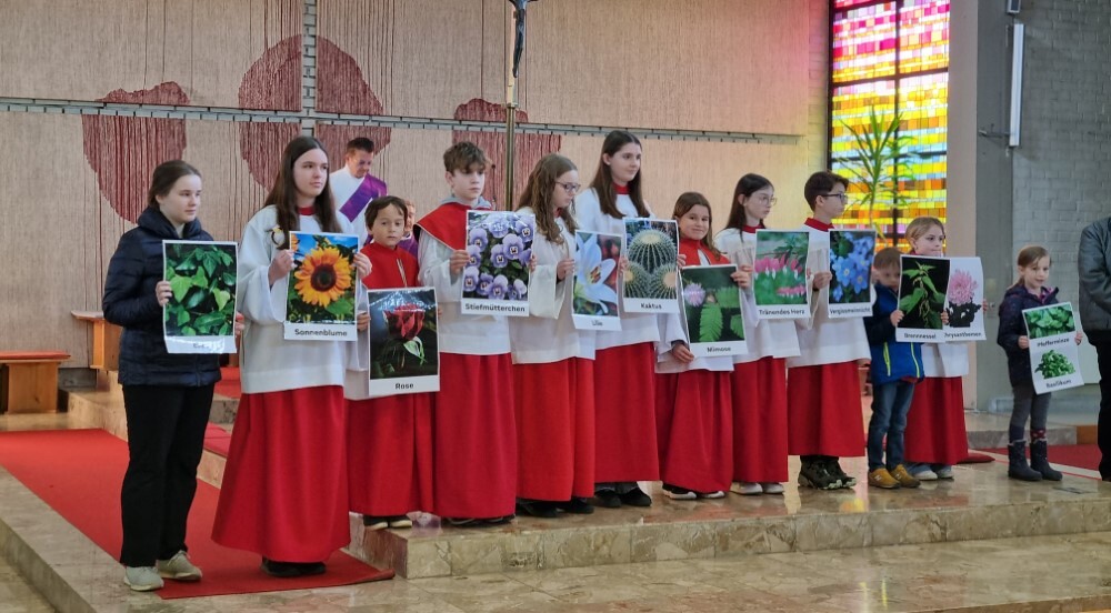 Gemeinsam mit Pfarrer Claudiu Budau und Diakon Wolfgang Garber feierten viele von ihnen den sonntäglichen Gottesdienst. Pastoralreferentin Ines und der neue Pastoralpraktikant Markus stellten mit unterschiedlichen Blumenbildern und der Beschreibung ihrer Eigenschaften auch anschaulich die Verschiedenheit der Aufgaben und Einsatzbereiche der ehrenamtlichen Mitarbeiter und Mitarbeiterinnen dar.