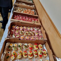 Und dann ging`s erst richtig los. Alle ehrenamtlichen Mitarbeiterinnen und Mitarbeiter wurden zu Sekt und Brötchen in den Pfarrsaal eingeladen.