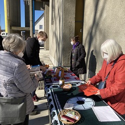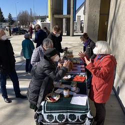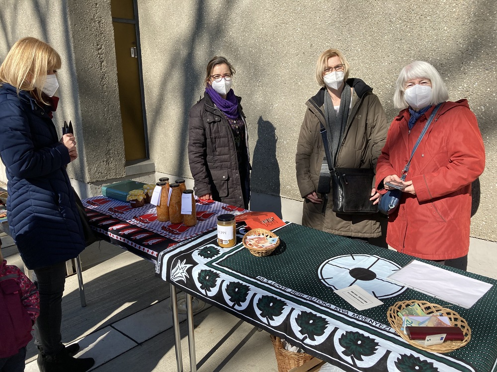 Danach fand im Rahmen des Familienfasttages der Suppensonntag heuer im Freien mit einem Verkaufsstand von "Suppe zum Mitnehmen" statt. Innerhalb kürzester Zeit waren die köstlichen Suppen ausverkauft. Über Euro 700 kamen an Spenden herein, die für die Partnerinnen in Kenia zur Unterstützung junger Mädchen verwendet werden. Die engagierten Frauen der Weltgruppe gestalteten auch den Gottesdienst mit. Ein herzliches Danke allen Beteiligten!
