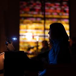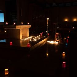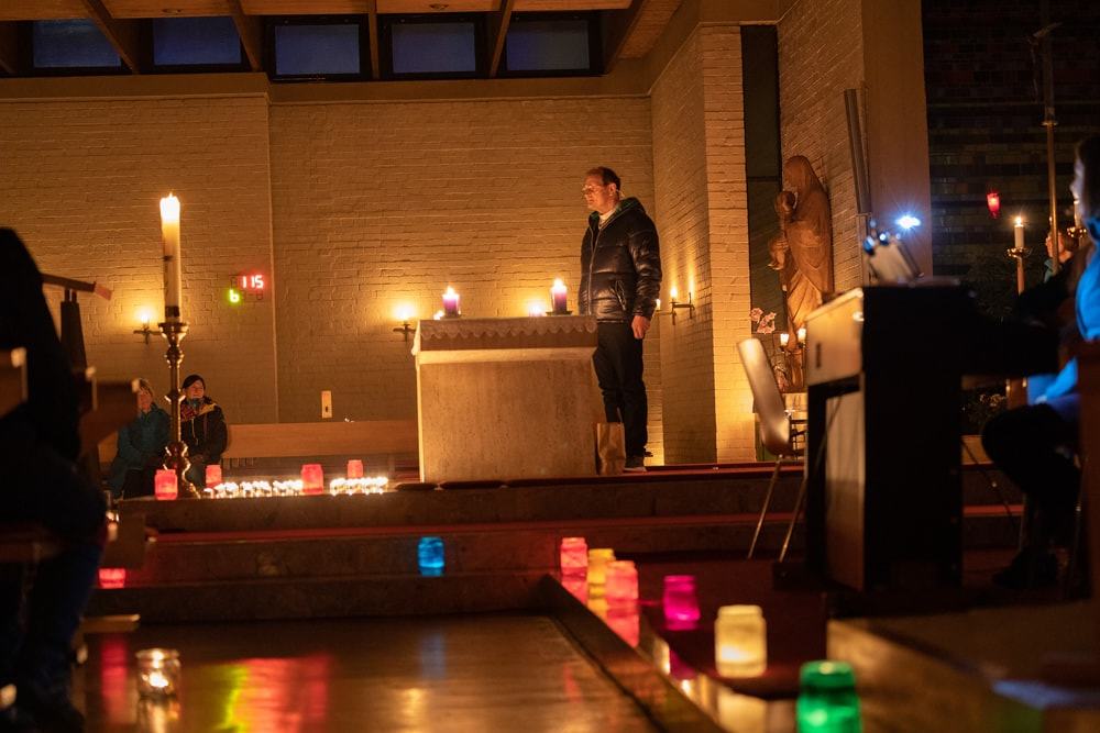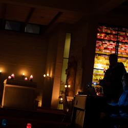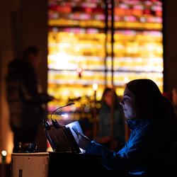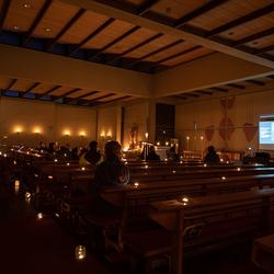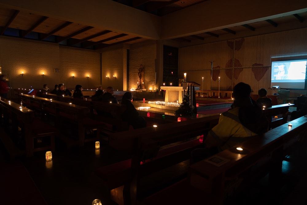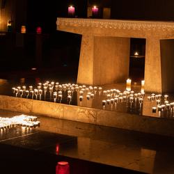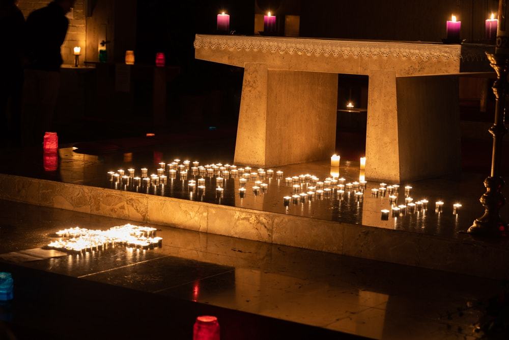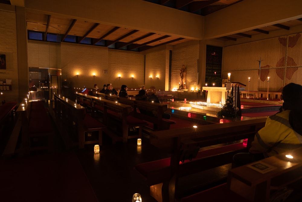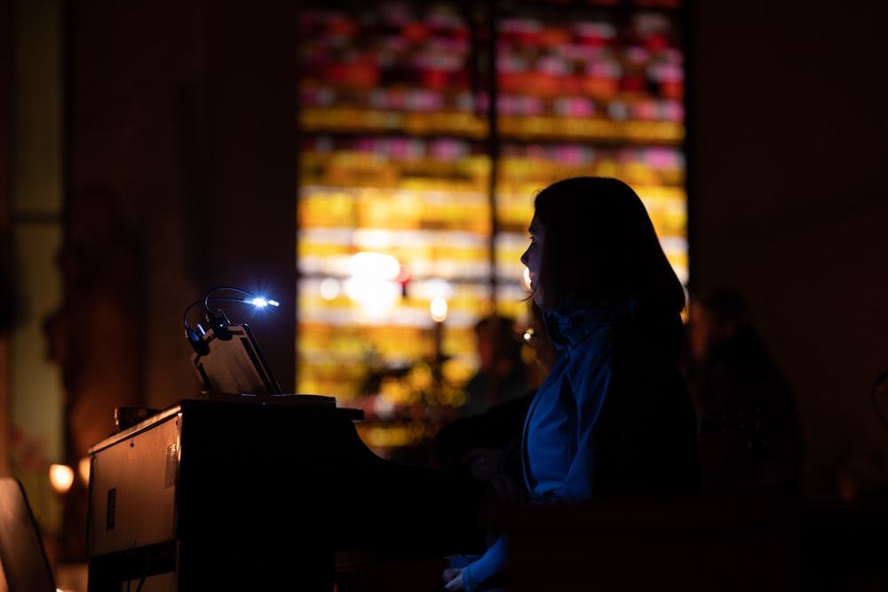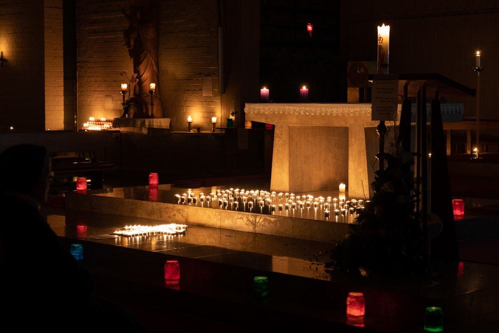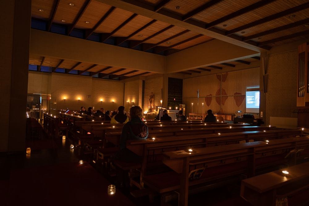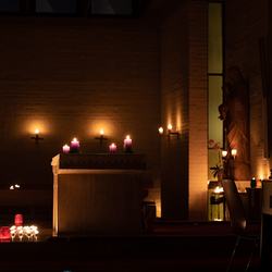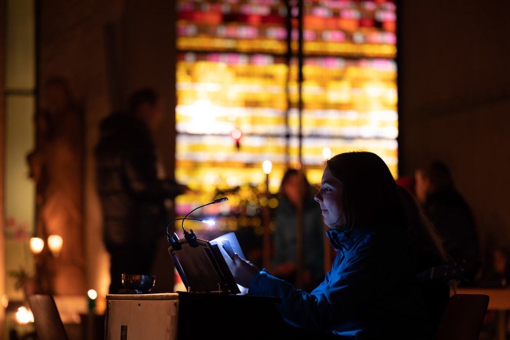 „Beim Ankommen staunend die Lichter vor und in der Kirche wahrnehmen. Die vorgetragenen Impulse achtsam hören und aufnehmen, sich der Stille in der Kirche bewusst werden, obwohl viele Menschen umhergehen. Geborgenheit spüren, den Menschen gegenüber die mir diese kostbaren Augenblicke zuteil haben werden lassen.“