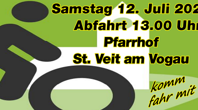 Wir fahren von St. Veit nach Kühnegg. Dort gibt es eine Andacht im Garten vom Hrn. Pfarrer. Danach fahren wir zur Einkehr beim Buschenschank Kummer in Perbersdorf b. St. Peter und wieder gemütlich zurück nach St.Veit.