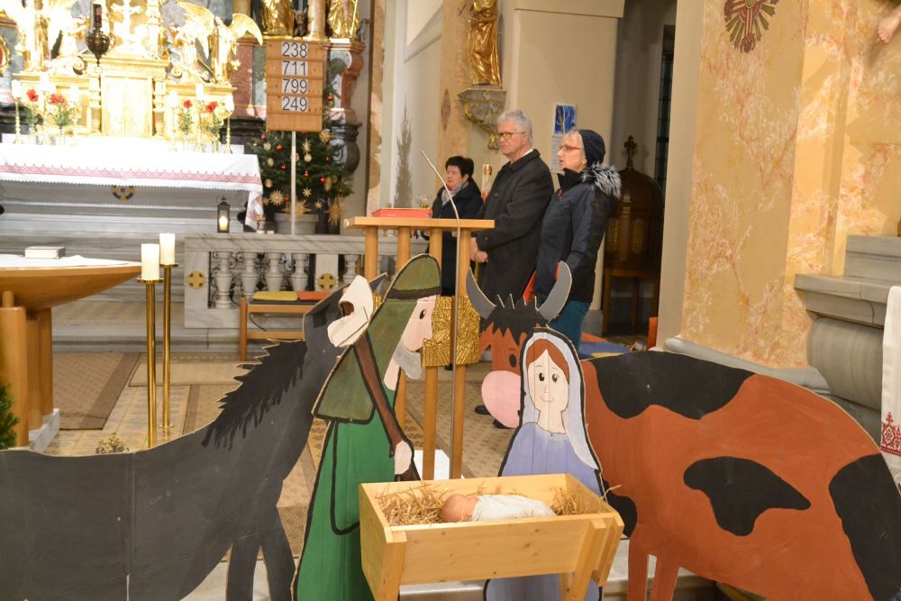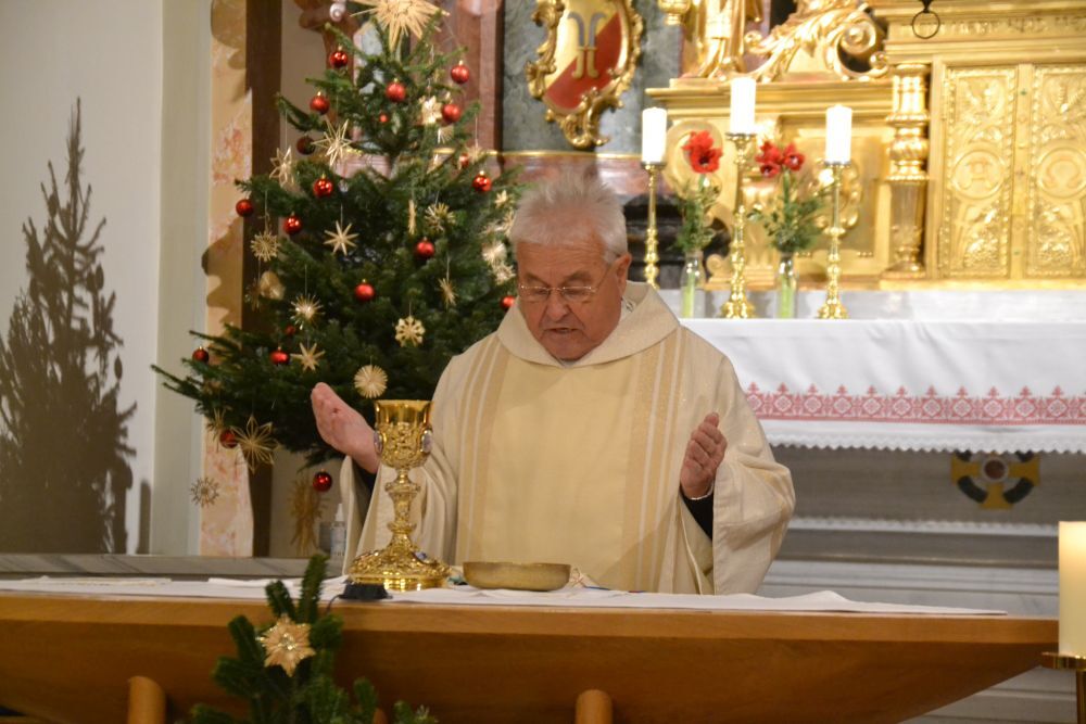 Die Mette am heiligen Abend feierte Kanonikus Fritz Trstenjak mit vielen Gläubigen. Zur Einstimmung erklangen Weihnachtslieder vom Quartett des Musikvereins. Der Gottesdienst wurde vom Kirchenchor musikalisch gestaltet.